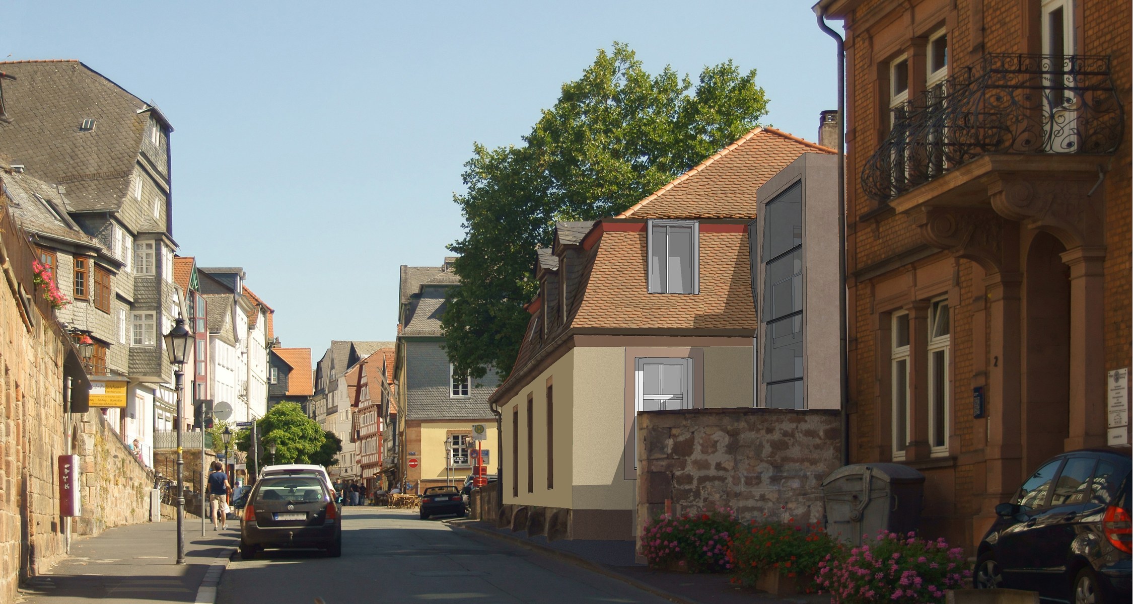 Bis vor kurzem wurde das Erdgeschoss vom Institut für Sportwissenschaften und Motologie genutzt, das als Wohnung ausgebaute Dachgeschoss stand aufgrund des baulichen Zustands seit längerem leer. Ein um 1900 errichteter Anbau mit Treppenhaus und Nebenräumen soll im Rahmen der Sanierung abgerissen werden. „Der Anbau hat die Form des Gebäudes nachteilig verändert. Nach dem Abriss erhält das Barockhäuschen seine frühere Kubatur zurück“, erläutert Maja Turba, Leiterin der Bauabteilung im Dezernat IV. Sie ergänzt: „Der Anbau schließt zur Barfüßerstraße 2 hin unmittelbar an die ursprüngliche Stadtmauer an – diese werden wir nun wieder freilegen.“