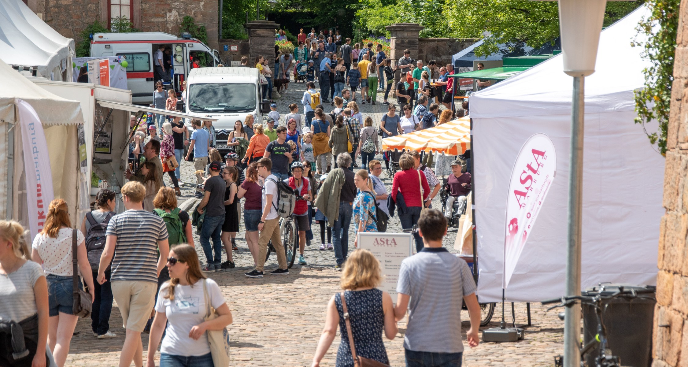 Bei angenehmen Temperaturen und strahlendem Sonnenschein feierten am Samstag, 25. Mai 2019, tausende Interessierte das Uni-Sommerfest am Schloss. Info-Stände, studentische Initiativen, Musik, Vorträge im Fürstensaal, Klettern, Balancieren, Malen mit Aussicht – das Programm gab Einblicke in viele Facetten der Philipps-Universität.