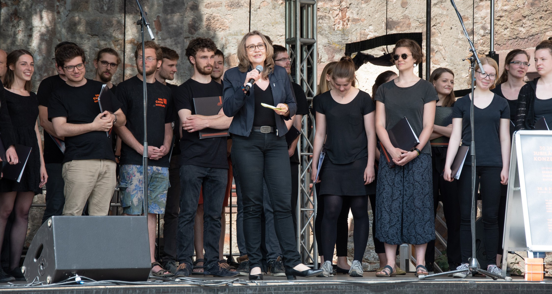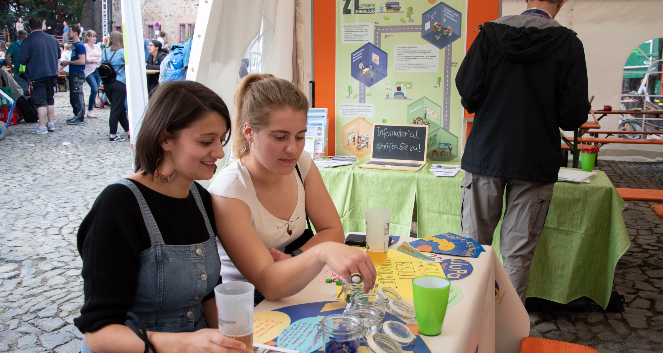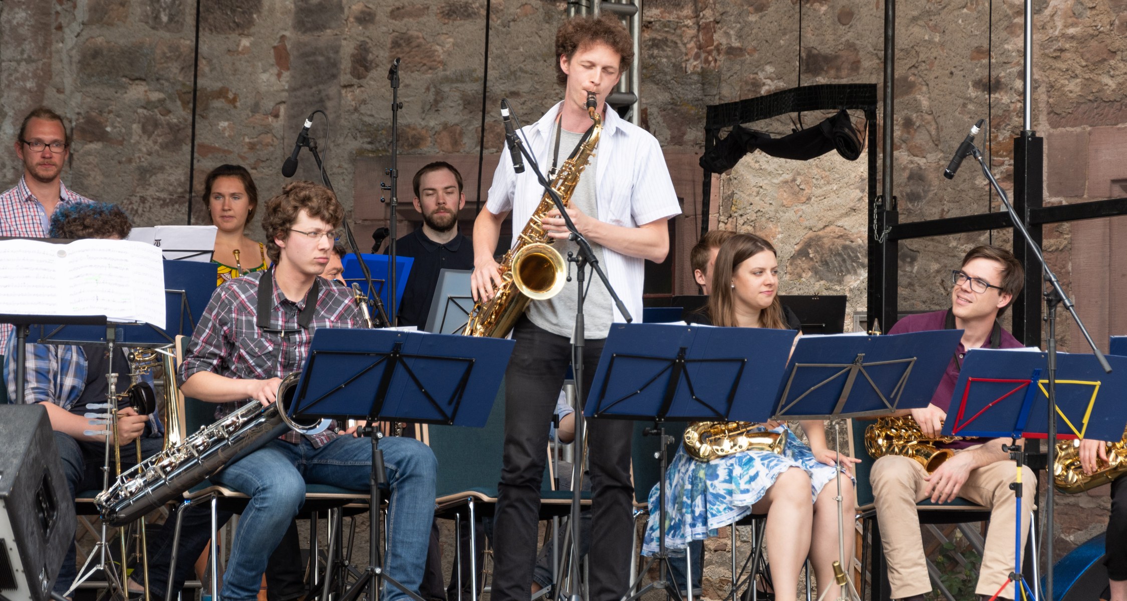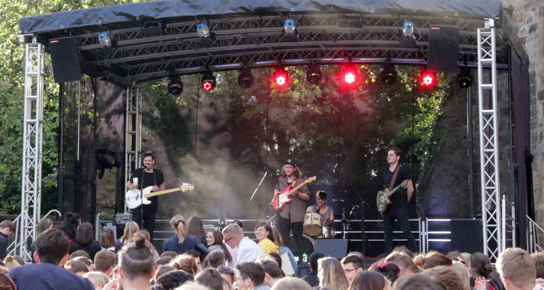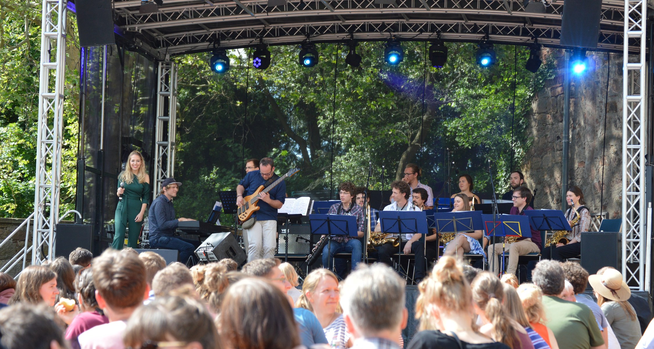 Vielfalt stand sowohl musikalisch als auch bei den Info-Ständen und den Programmbeiträgen im Schloss auf dem Programm. Mit Musik aus der Universität startete das Programm auf der Hauptbühne auf dem Schlossplatz um 14 Uhr. Der Unichor eröffnete das Programm stimmgewaltig mit Stücken aus verschiedenen Epochen, die einen musikalischen Einblick in vergangene Jahrhunderte gaben. Musikalisch klar im 20. und 21. Jahrhundert zu Hause waren die Titel der Studierenden-Bigband, die mit hervorragenden Instrumental- und Gesangssolisten und professionellem Groove schnell für gute Stimmung auf dem Platz vor dem Landgrafenschloss sorgte. Mit New Folk und Country leiteten „The Fearless Kitchen Singers“ langsam zum Abendprogramm über, das die studentische Band „The Flims“ mit Independence eröffnete und „Seven Blocks“ mit Rock-Cover-Titeln weiterführten, bevor die DJs Isabeau Fort und Nicolai van D bis Mitternacht auf der Bühne vor dem Schloss auflegten.