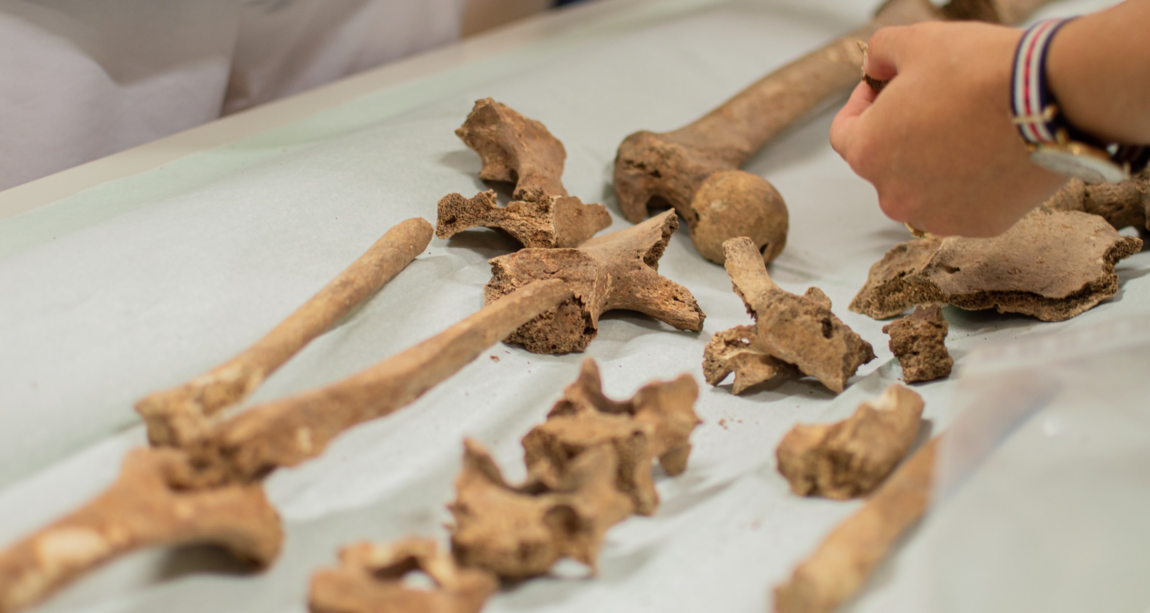 Robin Dürr ist Doktorand am Vorgeschichtlichen Seminar am Fachbereich Geschichte und Kulturwissenschaften der Philipps-Universität und gerade in den letzten Zügen seiner Dissertation. „Für mich von besonderem Interesse ist die spätrömische Epoche, welche den Übergang von der römischen Kaiserzeit zum Frühmittelalter bildet“, sagt Dürr. Besondere Einblicke in diese Zeit und die Lebenssituation der Menschen erhofft sich Dürr durch die Auswertung von 28 Gräbern einer ländlichen Nekropole, einer Begräbnisstätte, im Münchner Umland. „Die damalige Zeit war von Kontinuität und Wandel geprägt, was sich nicht zuletzt auch in den Gräbern wiederspiegelt“, ergänzt Dürr. Diese wurden bereits 2007 und 2012 ausgegraben. Ermöglicht wird die Arbeit unter anderem durch das Bayerische Landesamt für Denkmalpflege, das die Restaurierung der Funde durchführte und Dürr die naturwissenschaftliche Analyse der Gebeine zur Verfügung stellte. Anhand der bereitgestellten Daten konnte er wichtige Erkenntnisse für seine Doktorarbeit gewinnen. „In einem Grab fanden sich beispielsweise zwei Personen, bei welchen es sich um Vater und Sohn gehandelt haben könnte. Beide weisen zahlreiche, teils durch Schwerthiebe verursachte, Verletzungen auf, welche auf ein gewaltsames Ende hindeuten“, sagt Dürr.