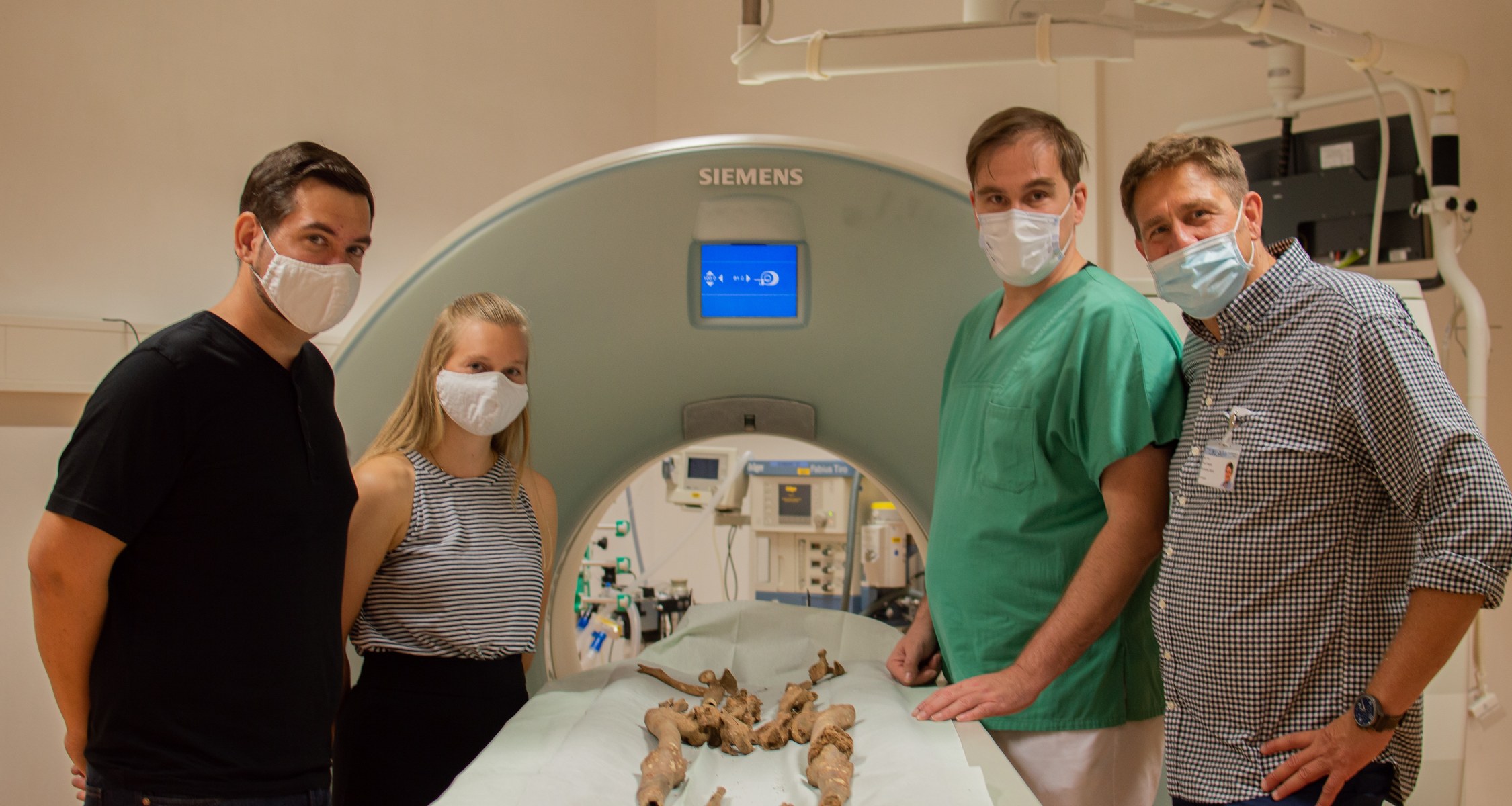 Daher wandte Dürr sich an Prof. Dr. Andreas H. Mahnken, Direktor der Klinik für Diagnostische und Interventionelle Radiologie am Universitätsklinikum Marburg und Professor für Radiologie am Fachbereich Medizin der Universität Marburg sowie Prof. Dr. Axel Hegele, Facharzt für Urologie am Urologischen Zentrum Mittelhessen, der bis Dezember 2019 als leitender Oberarzt in der Klinik für Urologie und Kinderurologie am Universitätsklinikum Marburg tätig war. Beide Ärzte fanden das Thema vor allem aus medizingeschichtlicher Sicht spannend. Die Aufzeichnungen zu Prostatakrebs beginnen nach derzeitigen Erkenntnissen erst im 19. Jahrhundert. Ob die Krankheit schon vorher auftrat, ist bislang nicht ausreichend belegt. Doch das Interesse an den archäologischen Befunden bewiesen die Mediziner schon zuvor: Beide Fachbereiche der Universität Marburg arbeiteten im Zuge des UMR2027-Projektes „Archäologie trifft Medizin: Mit medizinischer Bildgebung (CT) und 3D-Druck zur Rekonstruktion archäologischer Fundstücke“ erfolgreich zusammen.