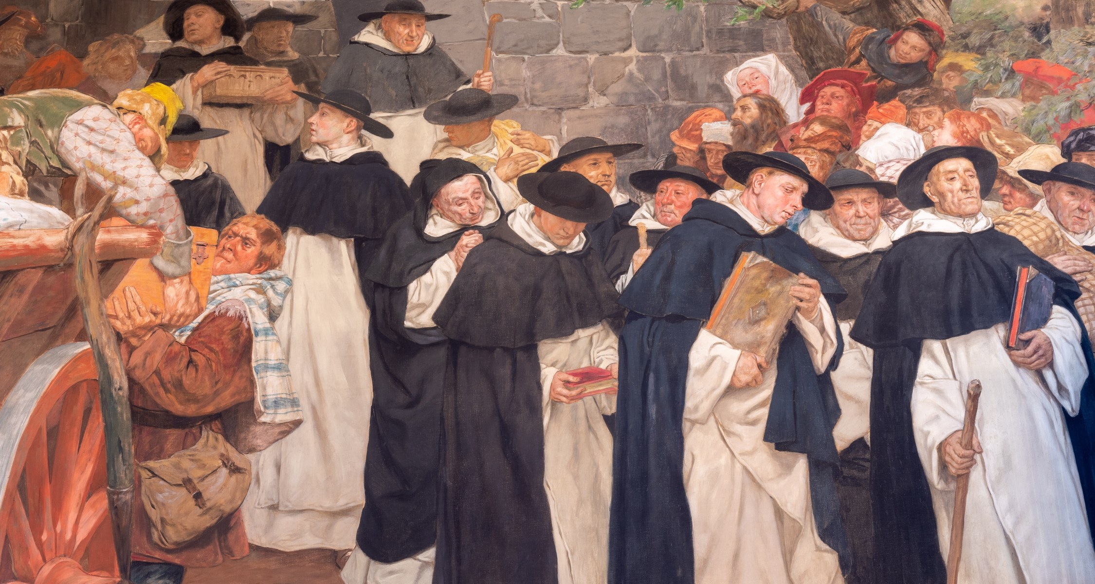 Im Sommer vergangenen Jahres begann schließlich die fränkische Restaurationswerkstatt George Hille mit der Arbeit in der Aula. Die durch Nässe und Salzausblühungen zum Teil stark beschädigten Wandabschnitte wurden entsalzt, trockengelegt und zweifach verputzt, bevor schließlich die Malereien originalgetreu wieder aufgetragen wurden. Für die Arbeiten in rund achteinhalb Metern Höhe mussten Gerüste gestellt werden. „Wir konnten dadurch Bereiche in Augenschein nehmen, die bislang für uns nicht erreichbar waren“, sagt der zuständige Projektleiter von der Philipps-Universität Jörn Eigmüller. Dabei zeigte sich, dass auch die Leinwandgemälde und die Maßwerkfenster kleinere Schäden aufwiesen.