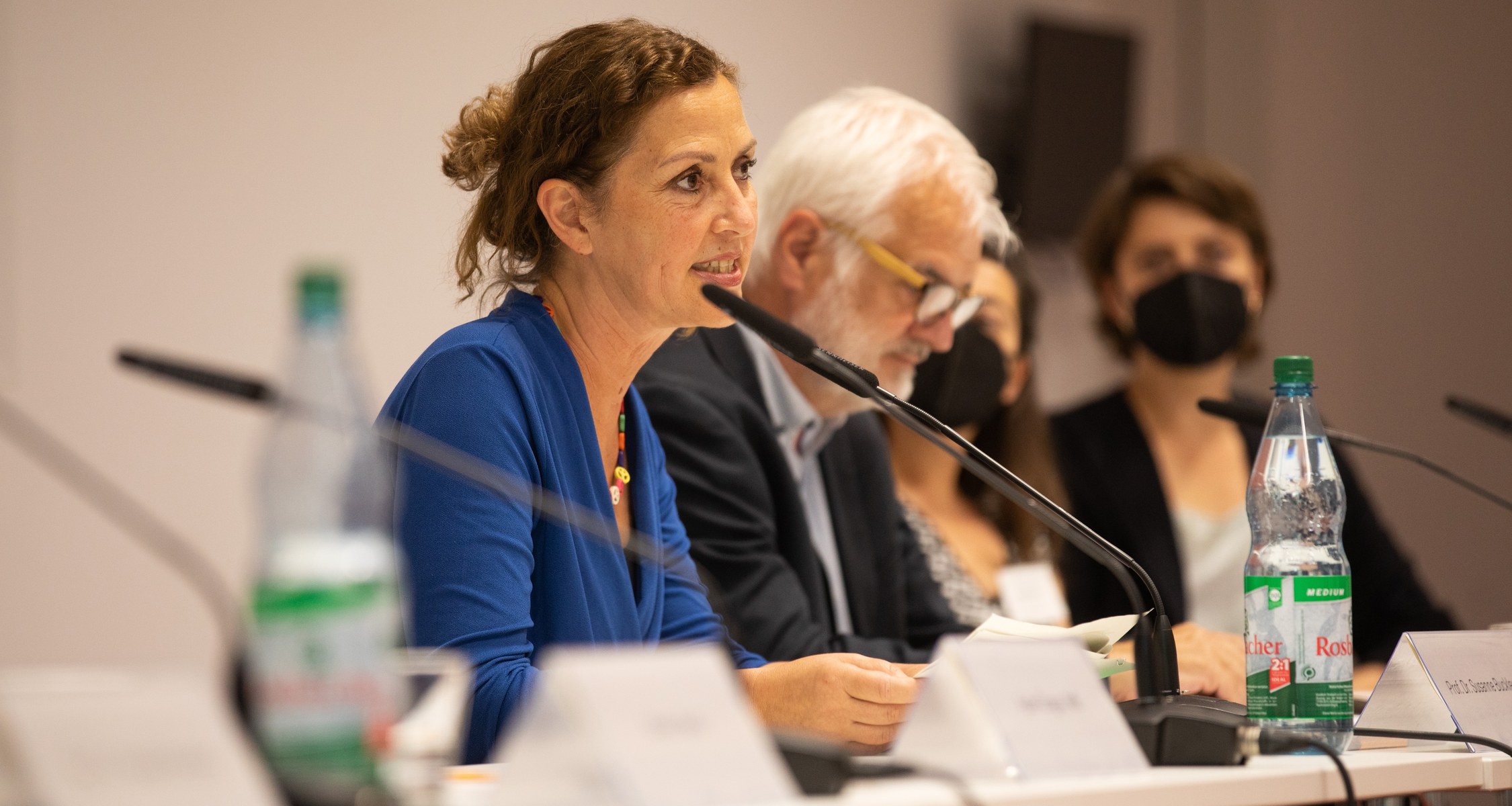 In der anschließenden Podiumsdiskussion unter dem Titel „Krise in der Friedens- und Konfliktforschung? Das Politische in der Wissenschaft“ tauschten sich Aydan Özoğuz (Vizepräsidentin des Deutschen Bundestags), Prof. Dr. Hans-Joachim Giessmann (Direktor Emeritus der Berghof Stiftung und Vorsitzender des Beirats des ZfK), sowie vom ZfK Prof. Dr. Susanne Buckley-Zistel, Prof. Dr. Thorsten Bonacker (stellvertretender geschäftsführender Direktor), Miriam Tekath (wissenschaftliche Mitarbeiterin) und für die studentische Perspektive Laura Kotzur (ehemalige Studentin am ZfK, Teil des Redaktionsteams des Magazins „Uneins“, Mitarbeiterin in der Nachwuchsgruppe Transnationale Konflikte“, FU Berlin); Dr. Mariam Salehi (Zentrum für interdisziplinäre Friedens- und Konfliktforschung, FU Berlin, Nachwuchsgruppenleiterin „Transnationale Konflikte“) zu der Frage aus, welche politische Wirkung Wissenschaft in der Politik haben kann oder soll und ob Wissenschaft politisch sein soll oder muss.