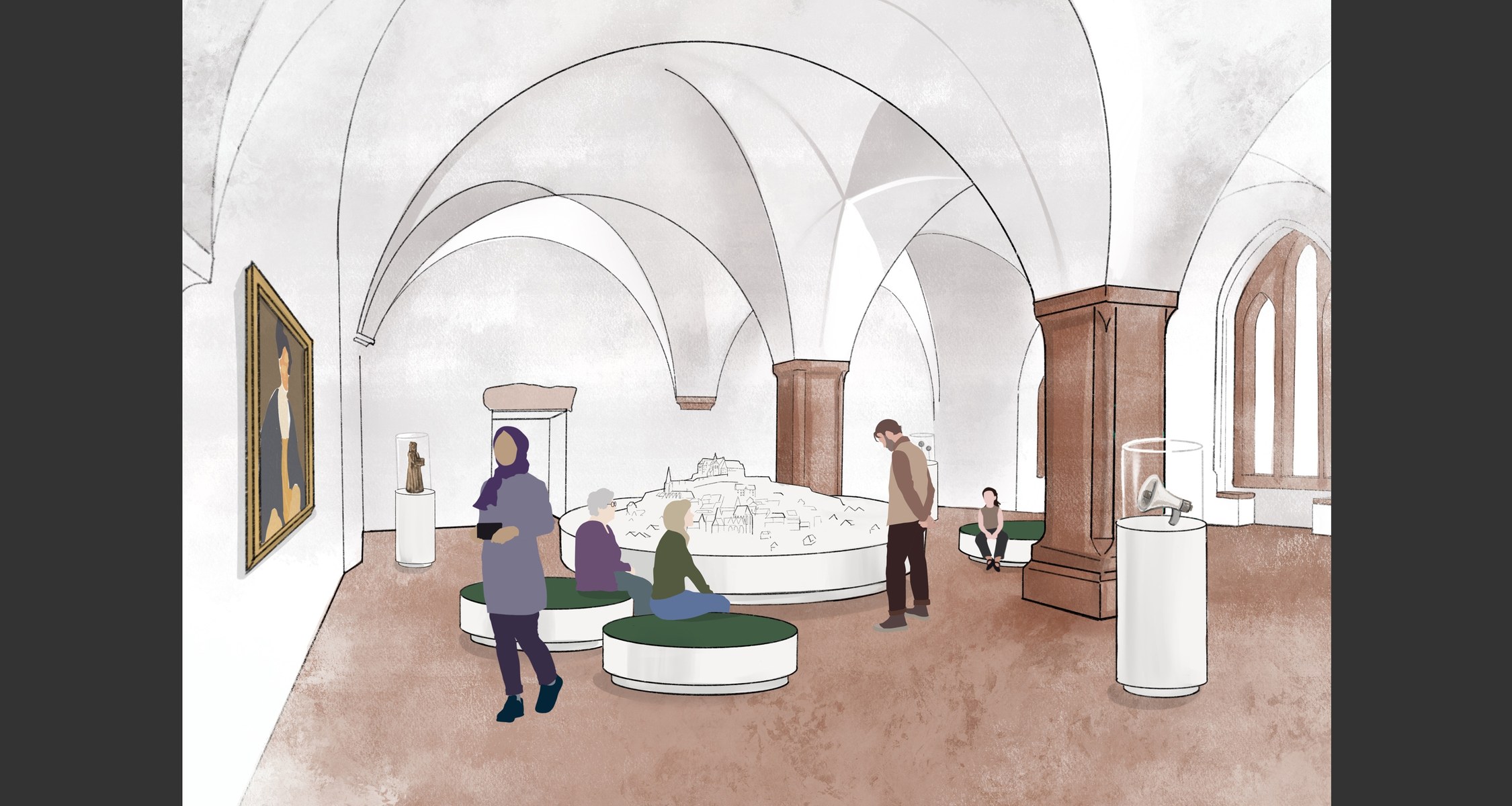 Dazu würden sogenannte „Satelliten“ installiert – etwa zum Marburger Religionsgespräch im Landgrafenzimmer, zum Behring-Labor und zum Schlosscafé, wo Marburger Keramik präsentiert werden könnte. Das zukünftige Café soll im Erdgeschoss des Wilhelmsbaus untergebracht werden.