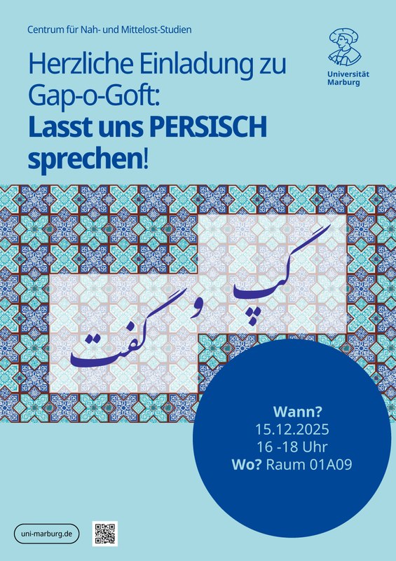 Mit Gap-o Goft möchten wir Euch eine Gelegenheit anbieten, außerhalb der Seminarräume Persisch zu sprechen und Persisch als eine aktive und kommunikative Sprache in entspannter Atmosphäre zu (er-)leben.