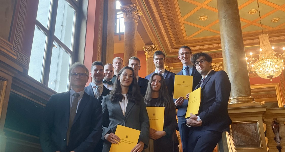 Mehrere Absolventinnen und Absolventen unseres Fachbereichs wurden im Beisein des Dekans, Prof. Dr. Markus Roth, im Hessischen Ministerium der Justiz als Jahrgangsbeste des Jahrgangs 2024 geehrt.