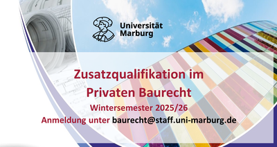 Weitere Informationen zur ZQ Baurecht auf unserer Website (Link) und auf Linkedin (Link) oder auf Anfrage per Mail an baurecht@staff.uni-marburg.de.