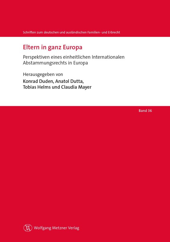 Zum Thema „Eltern in ganz Europa – Perspektiven eines einheitlichen Internationalen Abstammungsrechts in Europa“ wurde im Oktober 2022 in Marburg ein rechtsvergleichender Workshop veranstaltet. Der Band versammelt die auf der Tagung gehaltenen Referate. Der Flyer kann hier (PDF) heruntergeladen werden. |