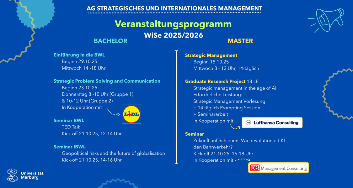 Hier finden Sie eine Übersicht über Veranstaltungen im Wintersemester 25/26 und Informationen zur Anmeldung.