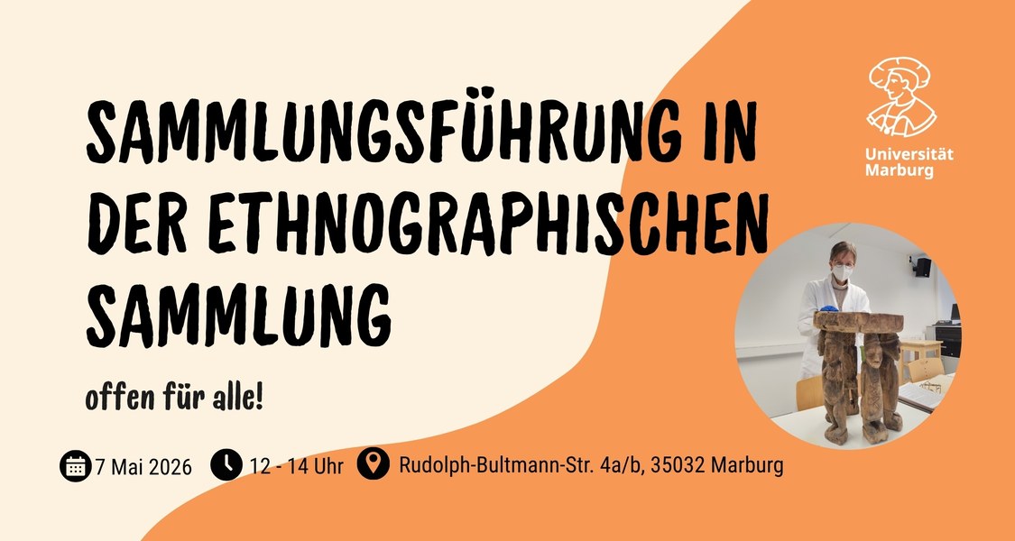 Im Rahmen der Orientierungseinheit (OE) und zum Start des Sommersemesters 2026 laden wir herzlich zu einer Führung durch die Ethnographische Sammlung ein. Die Führung wird von Dr. Dagmar Schweitzer de Palacios geleitet und bietet spannende Einblicke in die Sammlung sowie in anthropologische Perspektiven auf materielle Kultur. Die Veranstaltung ist offen für alle Interessierten.