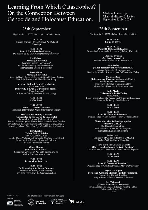 HMWK gefördertes Projekt: Aus welchen Katastrophen lernen? Zum Zusammenhang von Genocide Education und Holocaust Education. Eine (trans-) nationale Metaanalyse von Studien zur Vermittlungspraxis weltweit.