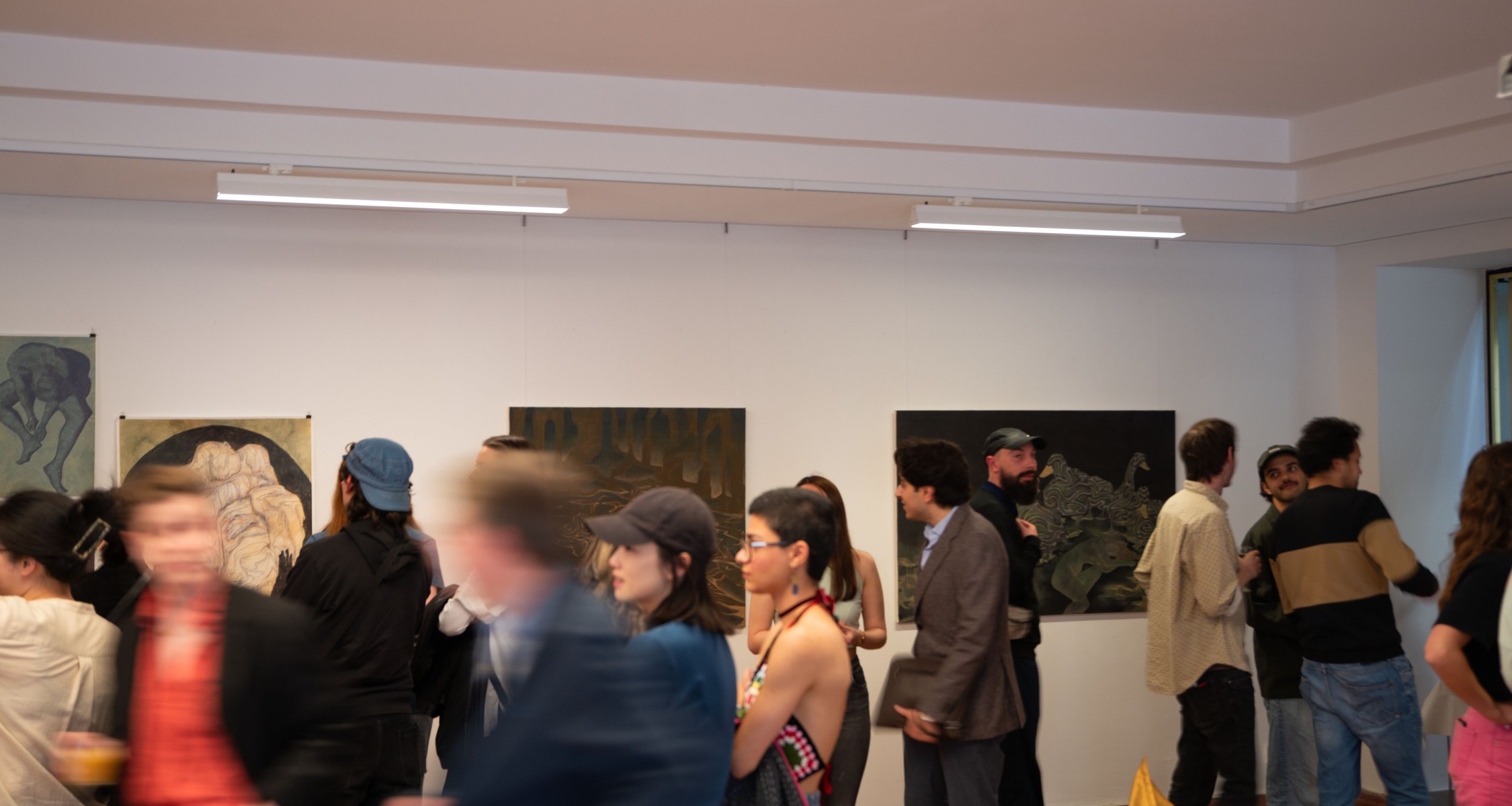 PHILIPP WEIS nahm 2021 das Studium der Bildenden Kunst – Künstlerische Konzeptionen in Marburg auf. In seinen neuesten malerischen Arbeiten, in denen durch ornamentale Formen definierte Landschaften und Figuren zu sehen sind, nutzt er zu deren Erweiterung Künstliche Intelligenz. Wiederkehrende Themen sind Gleichgültigkeit, Benommenheit und die Ambivalenz zwischen Resignation und Akzeptanz.