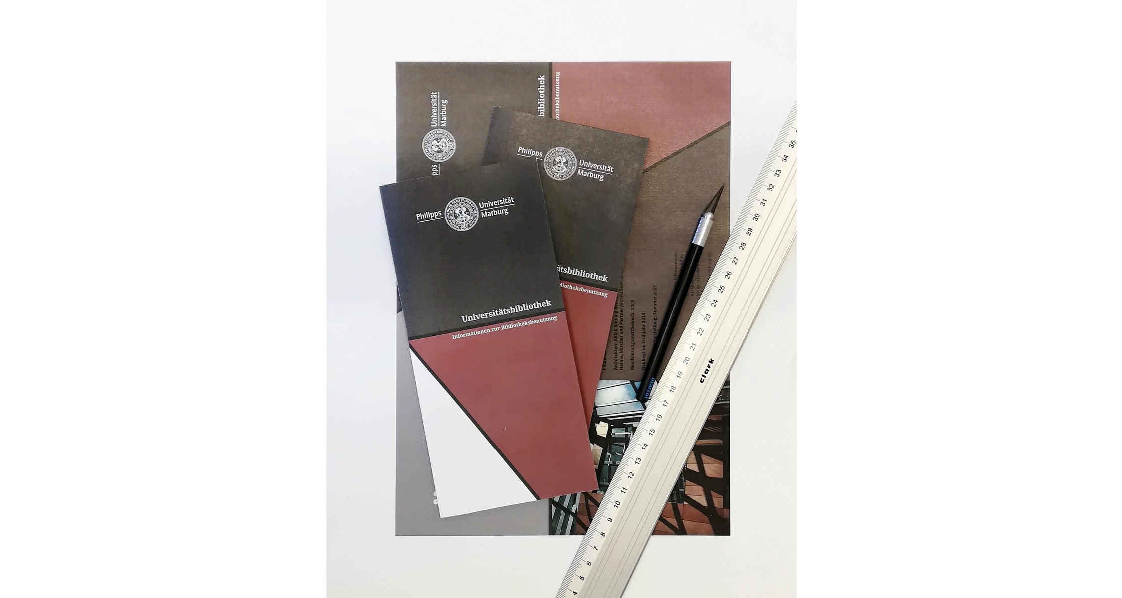 Gestaltung eines Imageflyers für die neue Universitätsbibliothek im Auftrag der Universitätsbibliothek der Philipps-Universität Marburg. Studierende (Gestaltung). Horn, Linda (Betreuung im Rahmen einer Lehrveranstaltung).