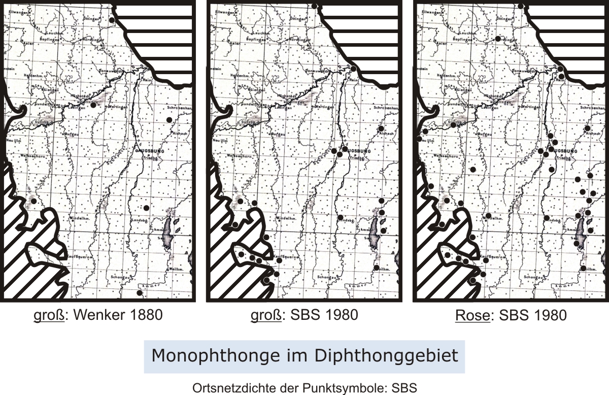 Reliktdiphthonge in Bayerisch-Schwaben 1880 (Schemadarstellung)