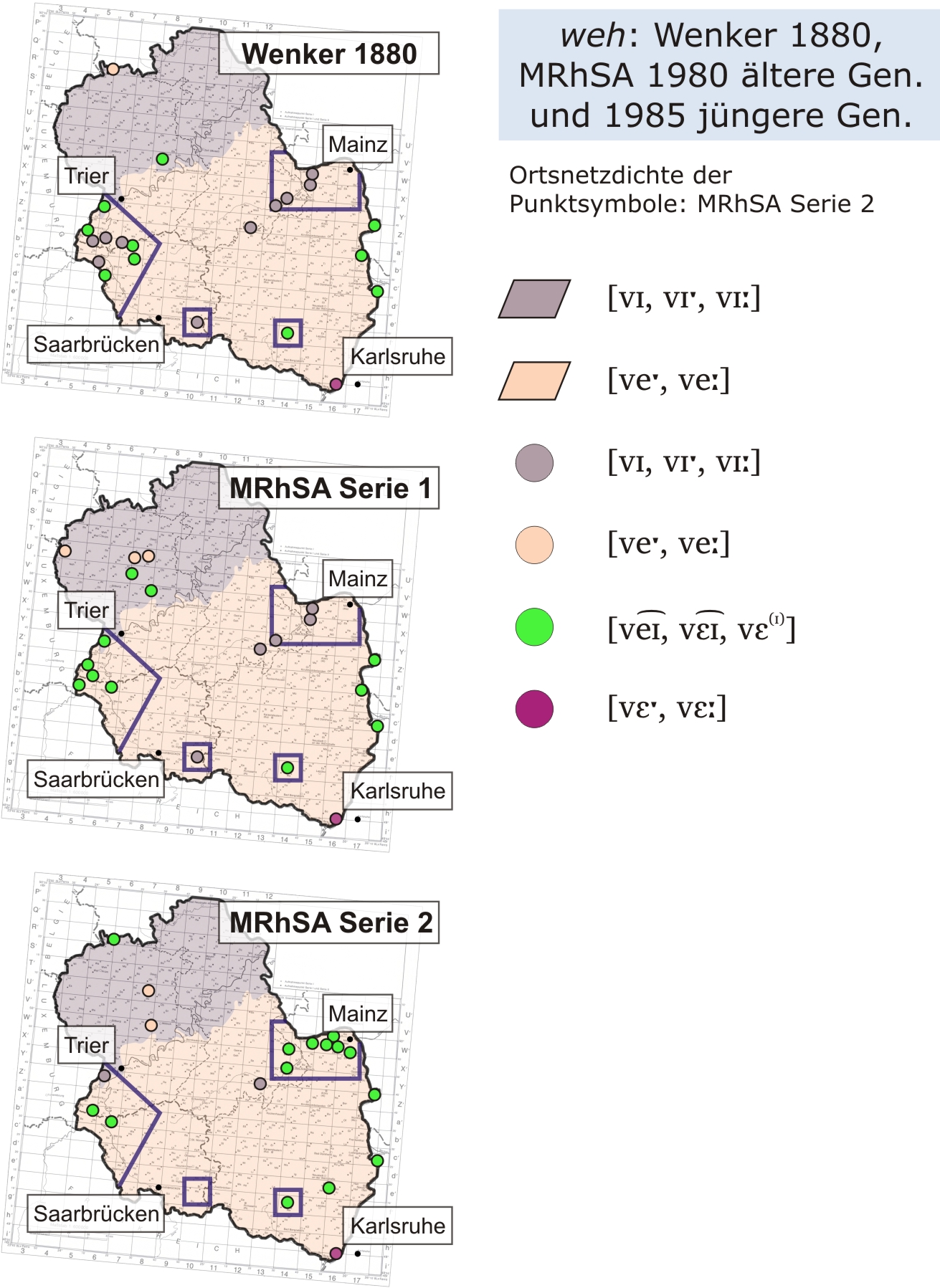 Wenker-Atlas vs. MRhSA weh (Ausschnittkarten)