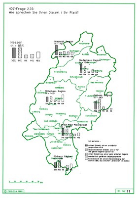 Hessischer Dialektzensus: „Wie sprechen Sie Ihren Dialekt / Ihr Platt?“ (Friebertshäuser/Dingeldein 1989, Karte 11)