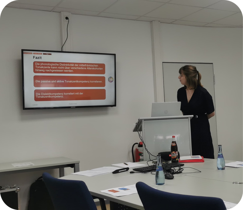 Simone Nopens hat erfolgreich ihre Ergebnisse aus der dreijährigen Forschung zum Thema „Prosodie im Abbau: Eine phonetisch-phonologische Untersuchung zur rezessiven Tonakzentdistinktion im Moselfränkischen“ verteidigt. Im Beisein ihrer Familie, der Prüfer Prof. Dr. Alexander Werth und Prof. Dr. Jürgen Erich Schmidt sowie einiger Kolleg*innen des GRK 2700 meisterte sie den letzten Schritt auf dem Weg zur Promotion. Dieser hart erarbeitete Meilenstein wurde im Anschluss an die Prüfung noch gebührend mit einem Glas Sekt gefeiert.