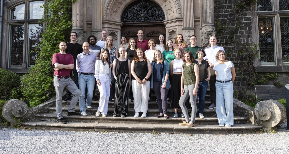 Die Doktorand*innen der zweiten Kohorte zusammen mit den PI's. Einige Mitglieder der ersten Kohorte nahmen ebenfalls am Retreat teil.