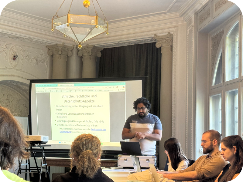 In interdisziplinären Gesprächen wurden erste Ansätze kritisch reflektiert und weiterentwickelt. Neben den wissenschaftlichen Diskussionen standen auch verschiedene Teambuilding-Aktivitäten im Mittelpunkt – darunter kreative Pitch-Formate und ein „linguistic speed dating“, die nicht nur den persönlichen Austausch förderten, sondern auch ein besseres Verständnis für die unterschiedlichen fachlichen Hintergründe ermöglichten.