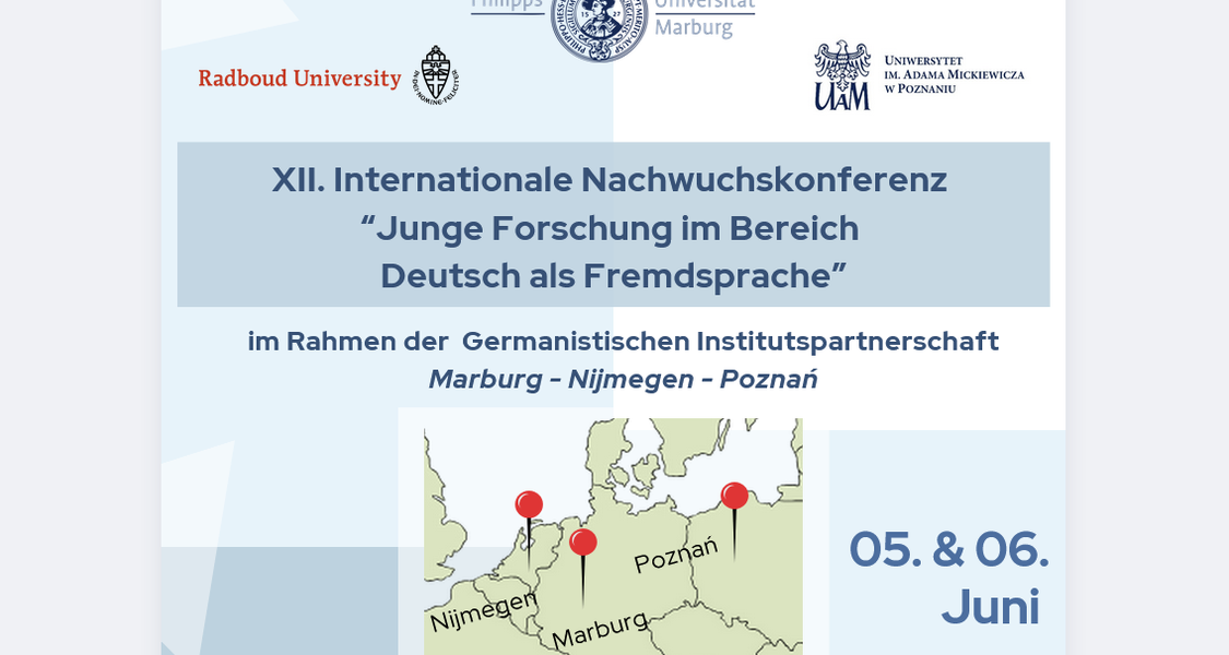 Die internationale Nachwuchskonferenz für Doktorand:innen und Habilitand:innen im Bereich Fremdsprachendidaktik mit Schwerpunkt Deutsch als Fremdsprache wird jährlich in Kooperation der Adam-Mickiewicz-Universität Poznań, der Radboud Universiteit Nijmegen und der Philipps-Universität Marburg organisiert, seit 2022 im Rahmen einer vom DAAD geförderten Germanistischen Institutspartnerschaft (GIP).