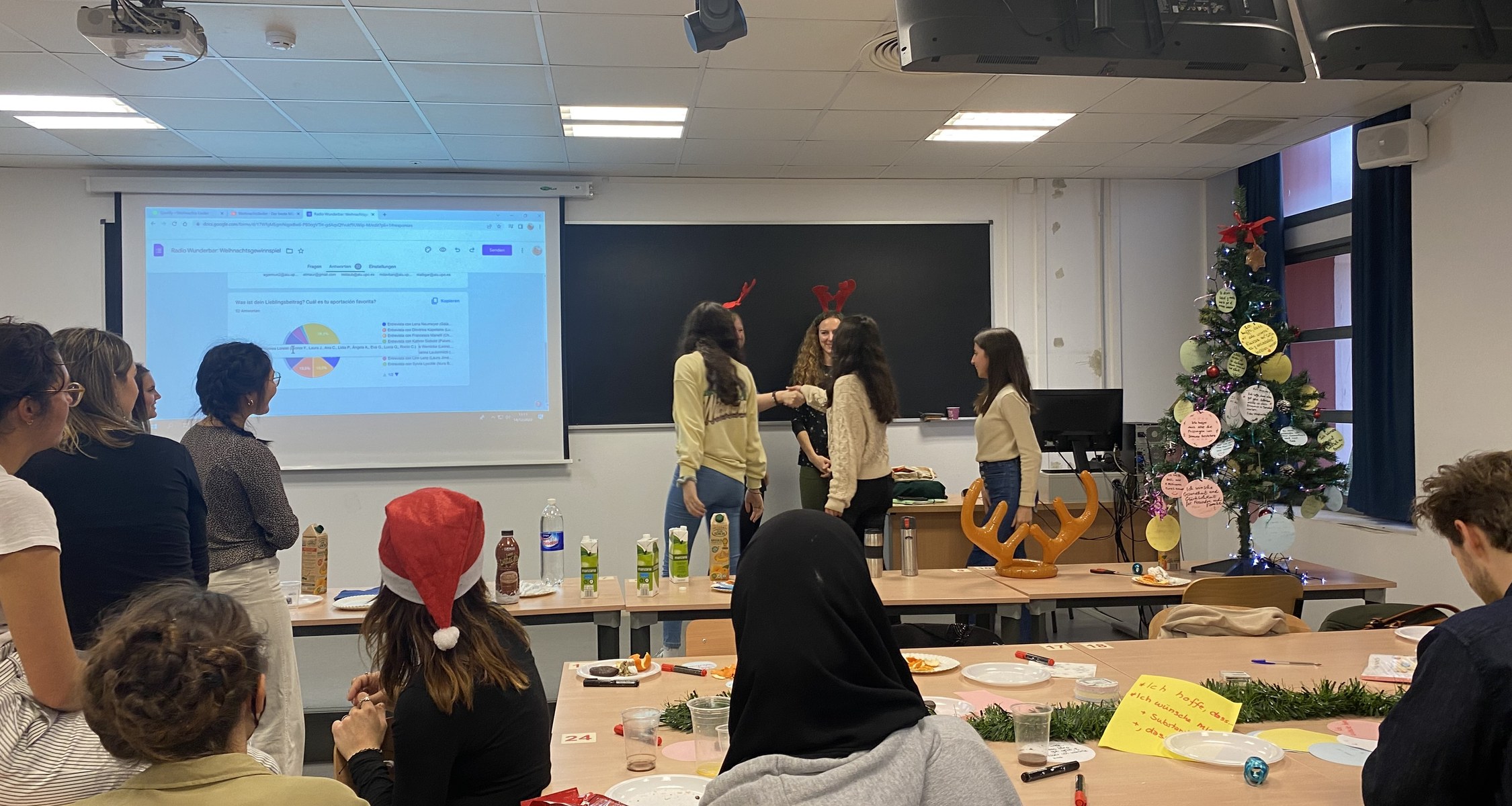 Da ich selbst keine Kurse an der Uni als Studentin belegen musste, habe ich über 60 UEs in verschiedensten Kursen hospitiert. Ich habe z.B. in zwei verschiedenen A1-Kursen den Unterricht beobachtet. Die meisten Stunden habe ich in einem A2-Kurs hospitiert, der zweimal die Woche stattfand. Neben den Sprachkursen bot sich mir auch die Möglichkeit den Unterricht in Fachkursen zu beobachten: z.B. einen Landeskunde-Kurs auf A2-Niveau, ein Seminar zur Soziolinguistik auf B2-Niveau sowie einen Kurs zur Übersetzungspraxis auf B1-Niveau. Insgesamt habe ich selbst 16 Unterrichtseinheiten durchgeführt. Die meisten Stunden habe ich ein Tutorium als freiwilliges Zusatzangebot zu dem A2-Kurs, in dem ich jede Woche zweimal hospitierte, unterrichtet. Dieses Tutorium bot ich mit den anderen beiden Praktikanten gemeinsam im Teamteaching an. Auch im Teamteaching haben die Lehrassistentin des DAAD und ich ein zusätzliches Tutorium zu einem A1-Kurs angeboten. Alleine habe ich einen Workshop / ein Tutorium zur Fertigkeit Schreiben für einen B1-Kurs unterrichtet, welches drei Sitzungen umfasste. Als Vertretung für die DAAD-Lektorin durften einer der Mitpraktikanten und ich zudem eine Stunde des Landeskundekurses auf A2-Niveau übernehmen. Neben den Hospitationen und der Übernahme eigener Unterrichtsstunden war ich zudem an der Projektorganisation des Internationalen Lernprojektes zum Thema „Vokabellernstrategien“ zwischen der UPO und der Philipps-Universität Marburg beteiligt und habe bei dem wöchentlich stattfindenden Deutsch-Spanisch-Tandemtreffen unterstützt. Wir Praktikant*innen durften auch bei den mündlichen Zwischen- und Semesterabschlussprüfungen der Studis dabei sein.