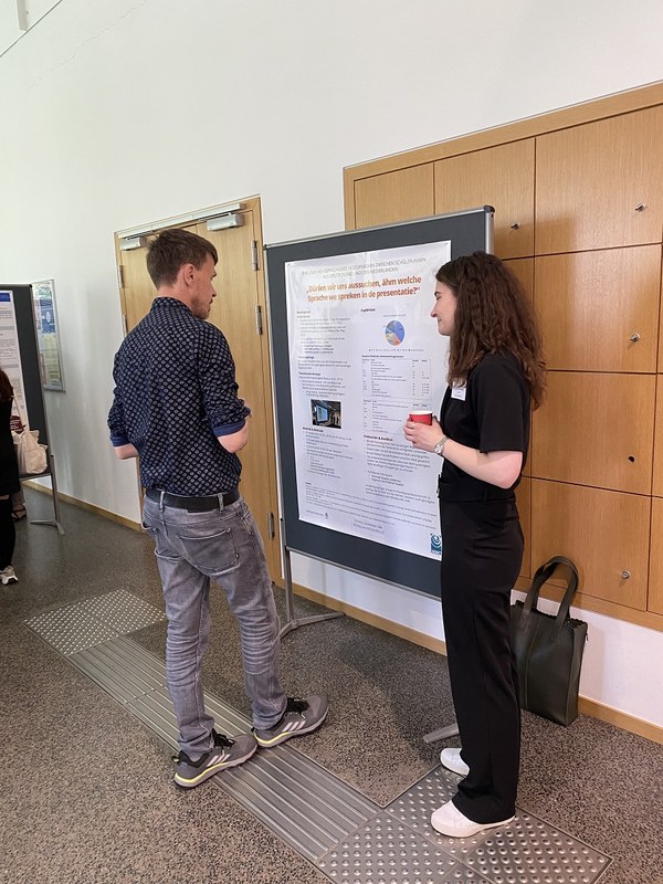 Auch die Postersession des wissenschaftlichen Nachwuchses stellte eine große Bereicherung für alle Teilnehmenden dar: Sie bot nicht nur spannende Einblicke in aktuelle Forschungsprojekte – insbesondere zu Mehrsprachigkeit, literalen Kompetenzen oder auch digitaler Interaktion – sondern ermöglichte zugleich einen intensiven Austausch in einem übergreifenden, dialogischen Rahmen.