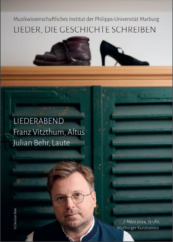 Flankiert wird die Tagung von einem Liederabend mit dem Altus Franz Vitzthum und dem Lautenisten Julian Behr, die u.A. Werke von John Dowland, César Franck und Enya spielen. Das Konzert findet am 7. März um 19 Uhr im Marburger Kunstverein statt und steht allen Interessierten offen. Der Eintritt ist frei.