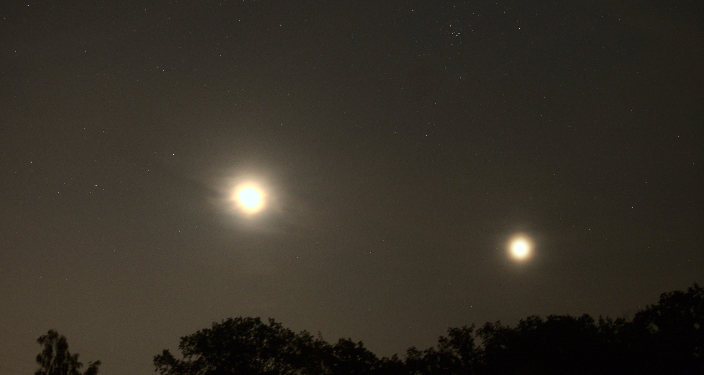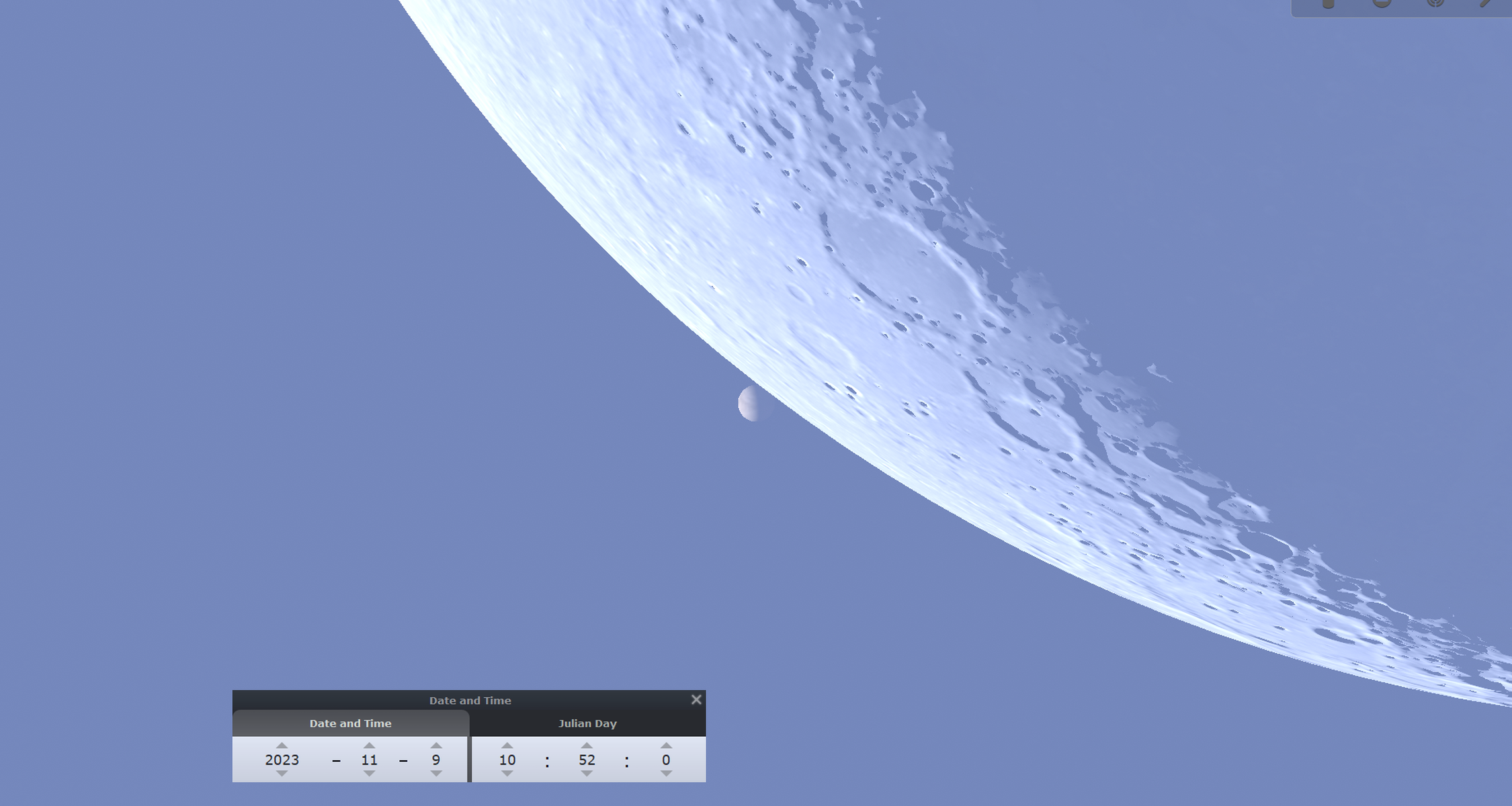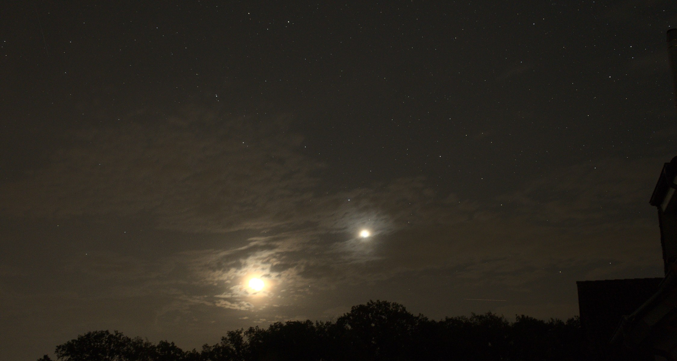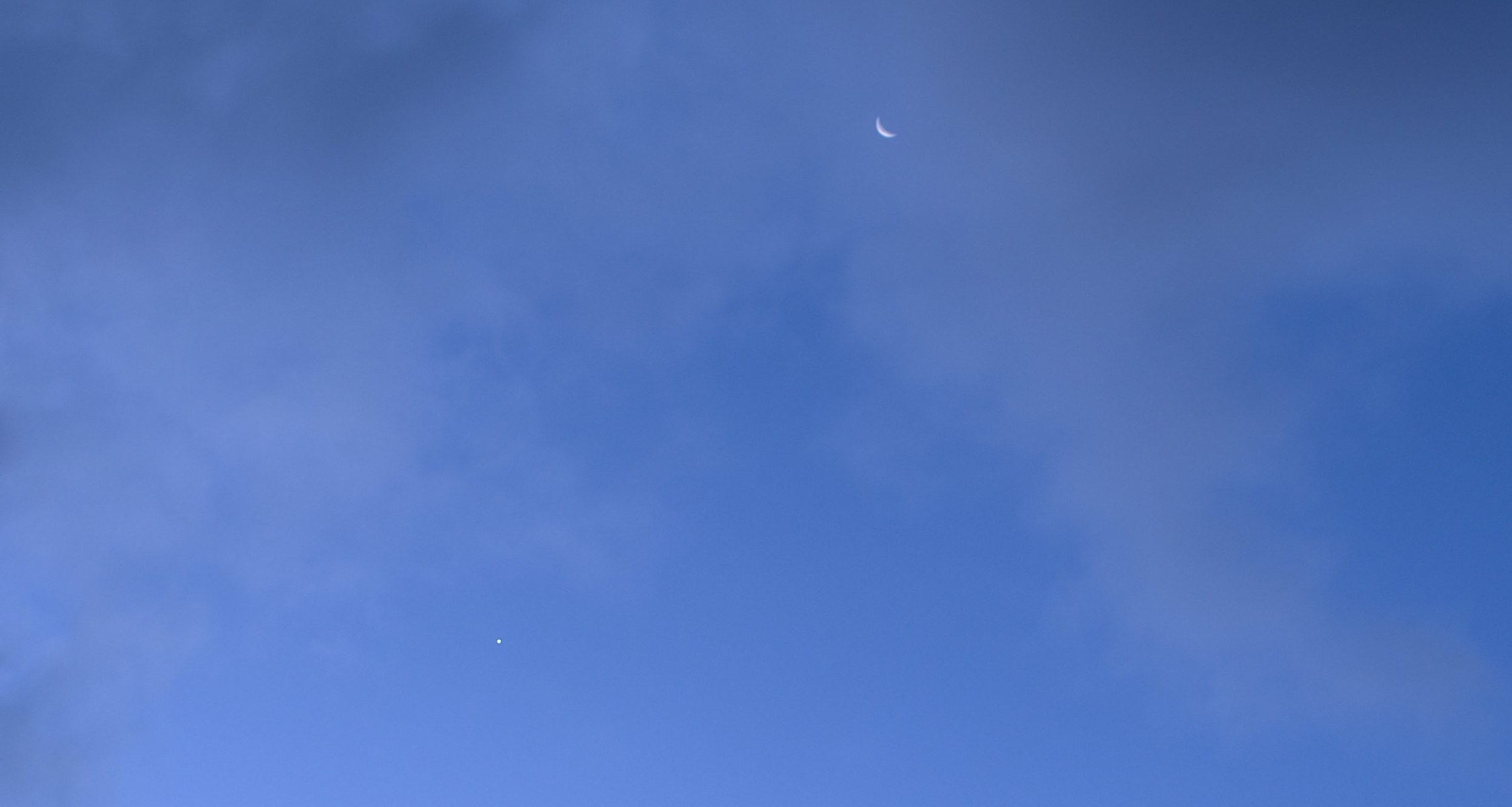 Der Mond zeigt sich am 9. November als abnehmende Sichel. Die Venusbedeckung beginnt daher mit dem beleuchteten Rand des Mondes. Sobald die beiden Himmelskörper dicht beieinander stehen, kann die Venus ohne Probleme mit bloßem Auge neben der Sichel ausgemacht werden.