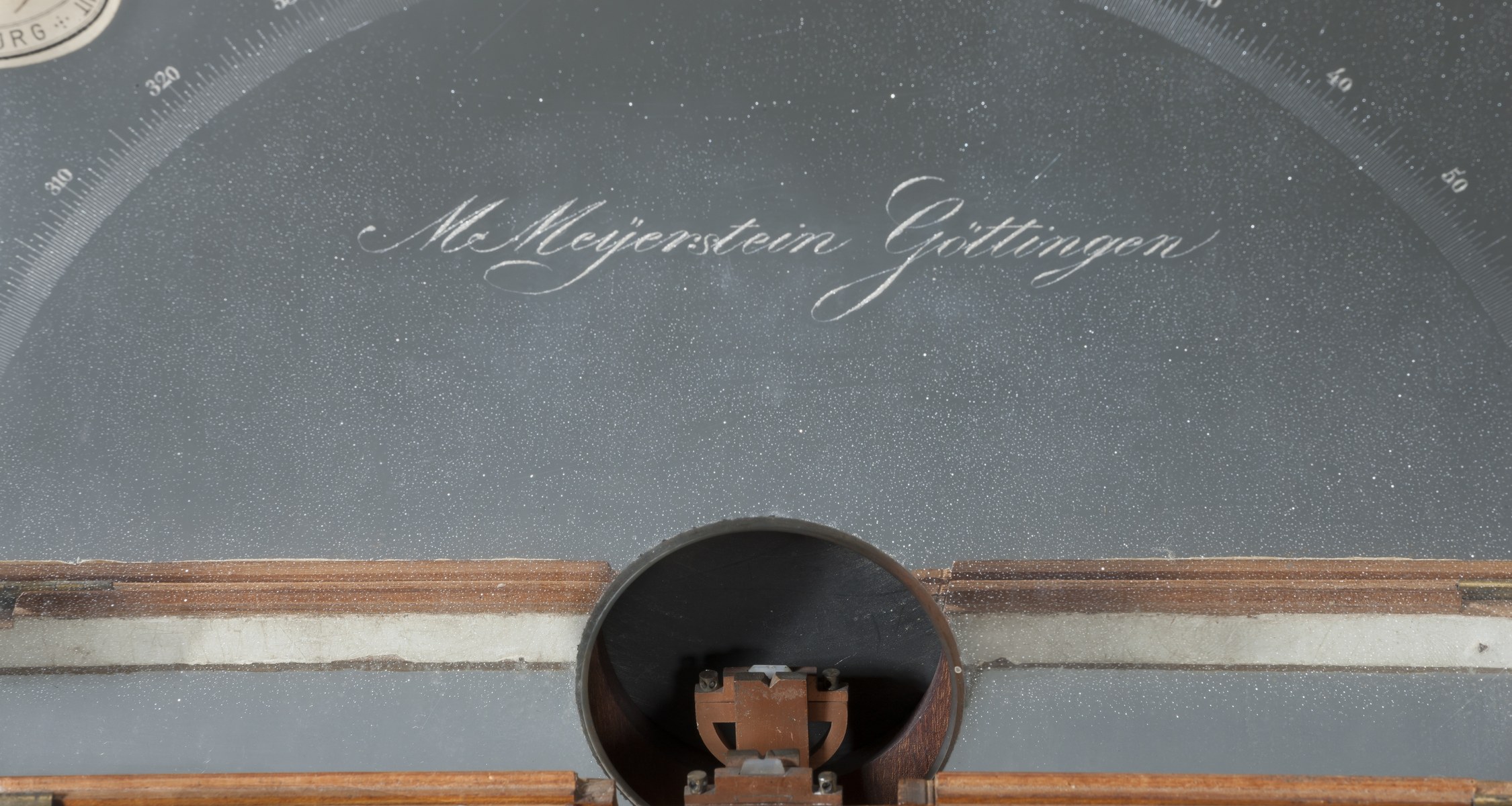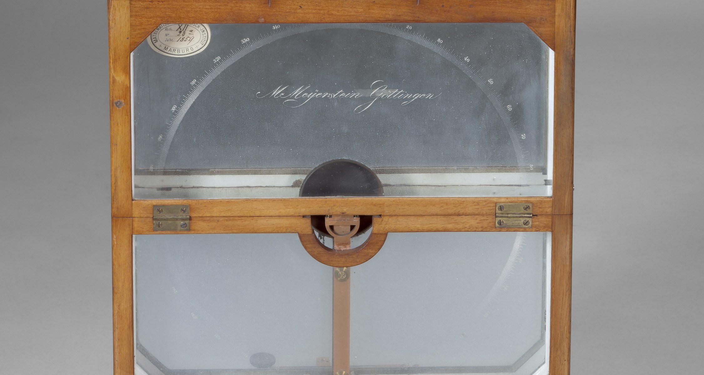 Das erste Meyersteinsche Inklinatorium kaufte Christian Ludwig Gerling 1835. Das hier gezeigte und einzige in der Sammlung vorhandene Gerät dieser Art wurde 1859 angeschafft.