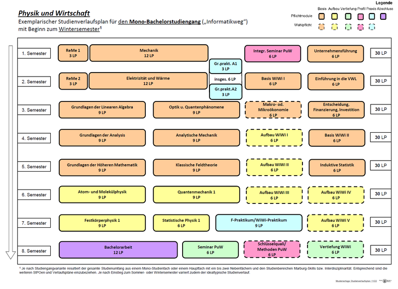 | ab WiSe 2023/2024 gilt verbindlich: B.Sc. Physik und Wirtschaft (8 Semester) |