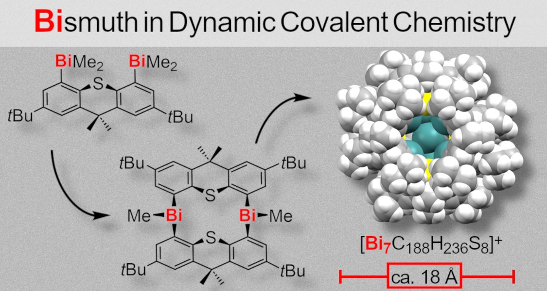 Können kovalente Bi–C-Bindungen reversibel gebrochen und geknüpft werden? Ja - und zwar durch den gezielten Einsatz externer Stimuli, wodurch der Aufbau neuer makrozyklischer und käfigartiger Strukturmotive gelingt! Dies zeigen wir in Andys Arbeit, die kürzlich zur Publikation in Angew. Chem. Int. Ed. angenommen wurde. Herzlichen Glückwunsch an alle Beteiligten!