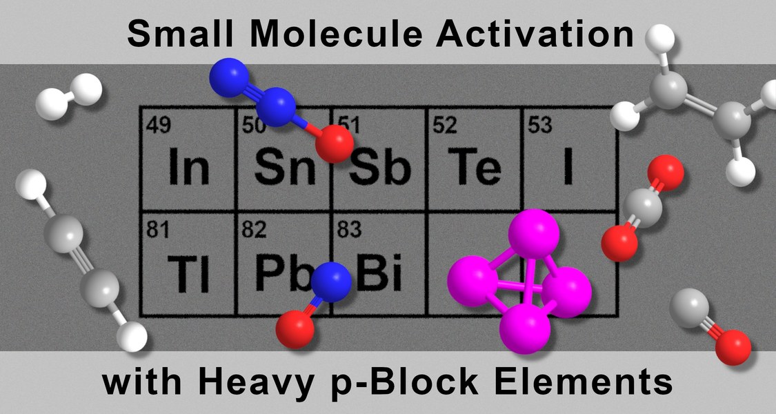 Schwere Elemente des p-Blocks: Die Aktivierung kleiner Moleküle wie Wasserstoff, Kohlenstoffmonoxid, Kohlenstoffdioxid, Ethen und Acetylen ist eine herausfordernde Fragestellung in der Synthesechemie. Diese Reaktionen gelten als wichtige Maßstäbe für die Einschätzung der Reaktivität der zur Aktivierung genutzten Verbindungen. Außerdem eröffnen diese Reaktionen wertvolle Perspektiven für die Nutzung kleiner Moleküle als Synthesebausteine. In Kais Übersichtsartikel wird hier die spezielle Rolle schwerer p-Block-Elemente in diesem Forschungsfeld beleuchtet. Die Arbeit wurde kürzlich zur Veröffentlichung in Chem. Commun. angenommen - herzlichen Glückwunsch!
