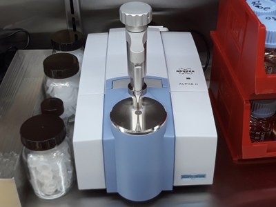 Ein ATR-IR-Spektrometer wird für die Analyse von Feststoffen und Lösungen unter Inertatmosphäre genutzt.