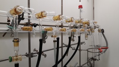 Arbeitsplätze mit Schlenklinien (Drehschieberpumpen, Inertgas) stehen zur Verfügung.