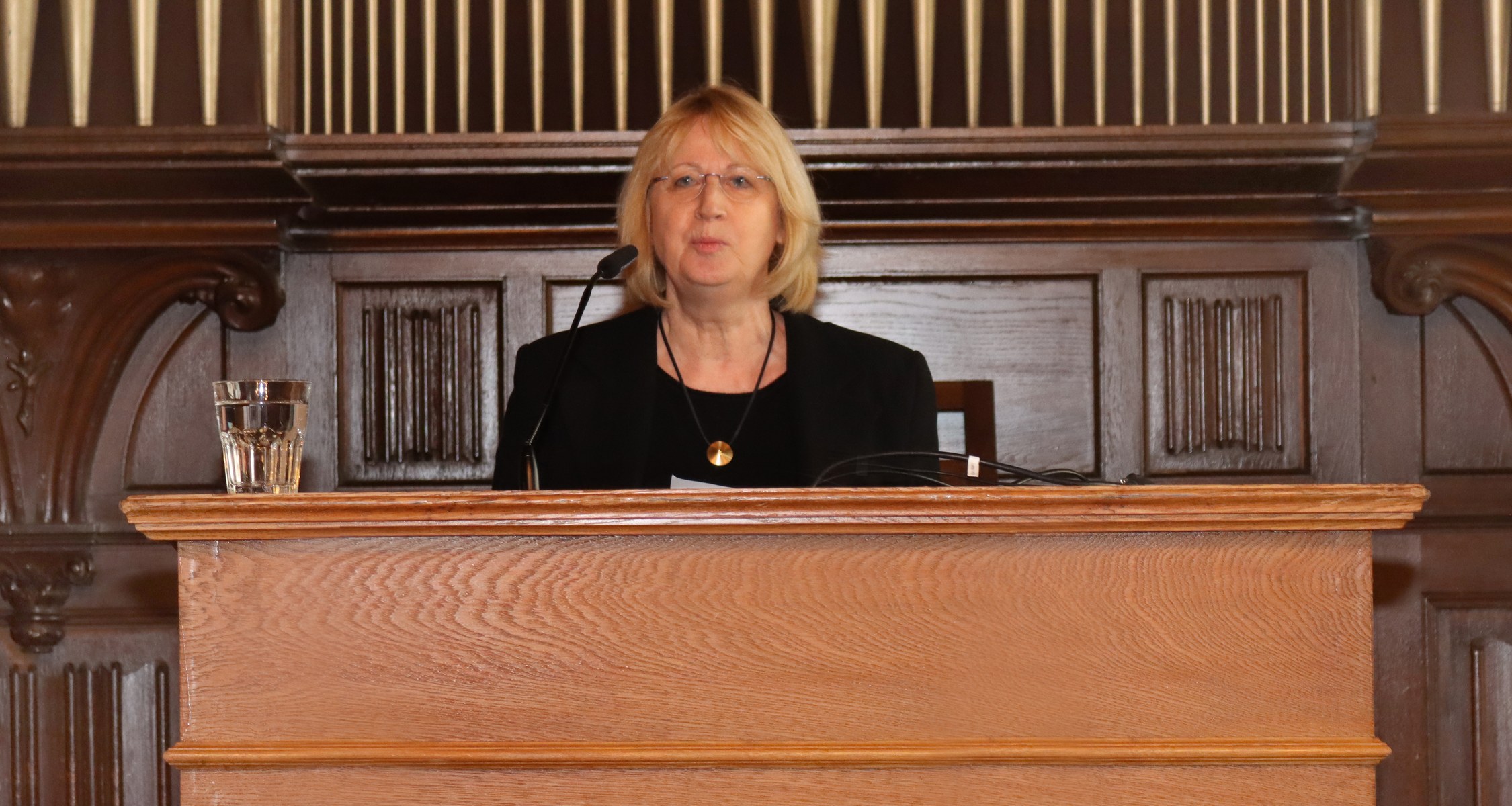 Dieses Thema wurde auch in der Ansprache von der Vizepräsidentin der Landesapothekerkammer Hessen, Frau Dr. Viola Schneider, aufgegriffen. Frau Dr. Schneider betonte die besondere Rolle der Apotheken im Gesundheitswesen, welche vielfältigen Tätigkeitsfelder sich dort für die Pharmazeut:innen ergeben und welche zentrale Position die Apotheker:innen für die Gesundheitsversorgung der Bevölkerung übernehmen.
