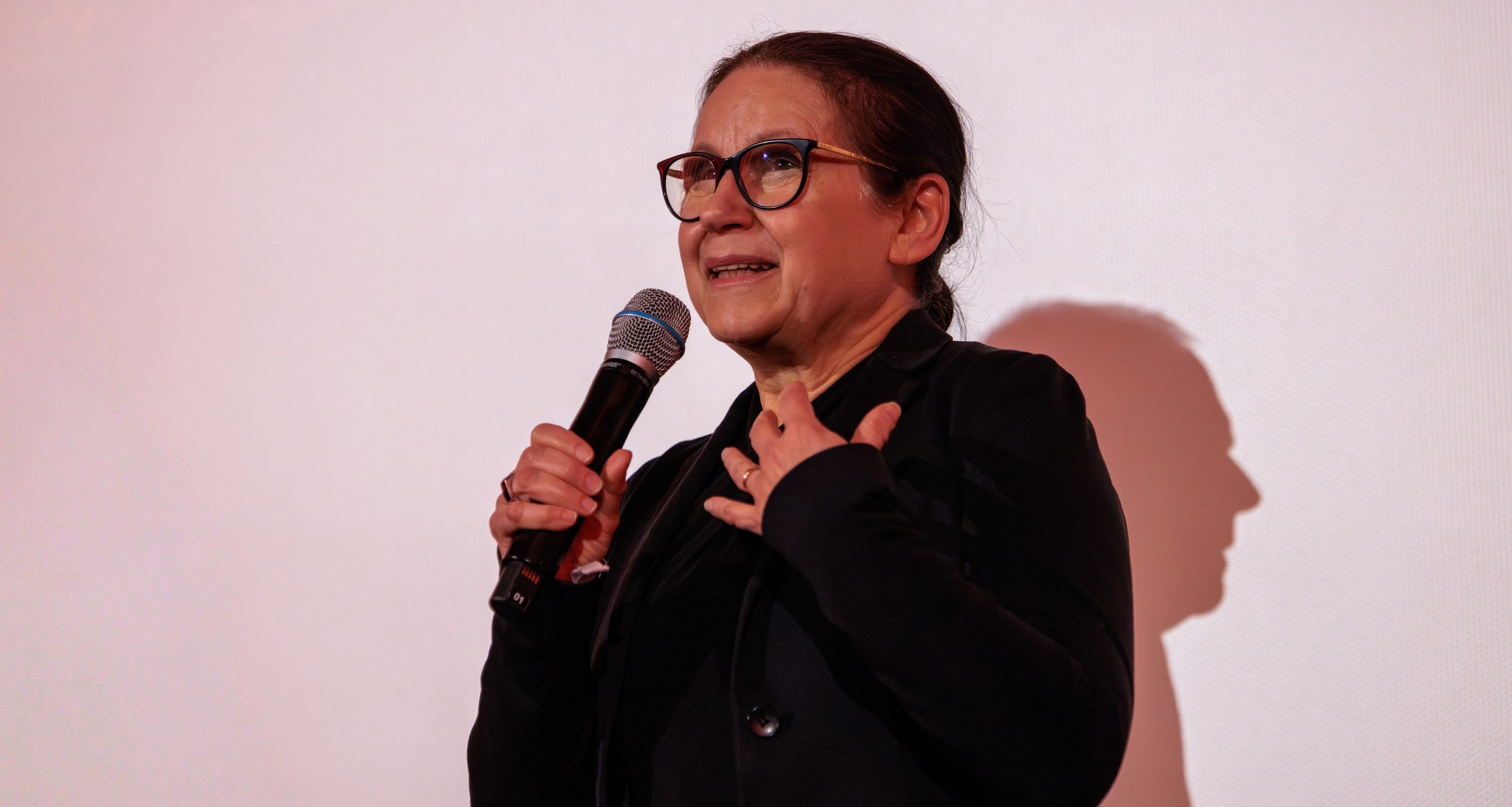 Dr. Tina Kaiser (Medienwissenschaft der Uni Marburg) moderierte im Anschluss ein Publikumsgespräch mit der Regisseurin Ildikó Enyedi sowie mit Luna Wedler und Enzo Brumm, die zwei der Hauptrollen spielten. Sie gaben Einblicke in die Entstehung des international produzierten Werks und betonten die wertvolle Zusammenarbeit mit der Universität Marburg.