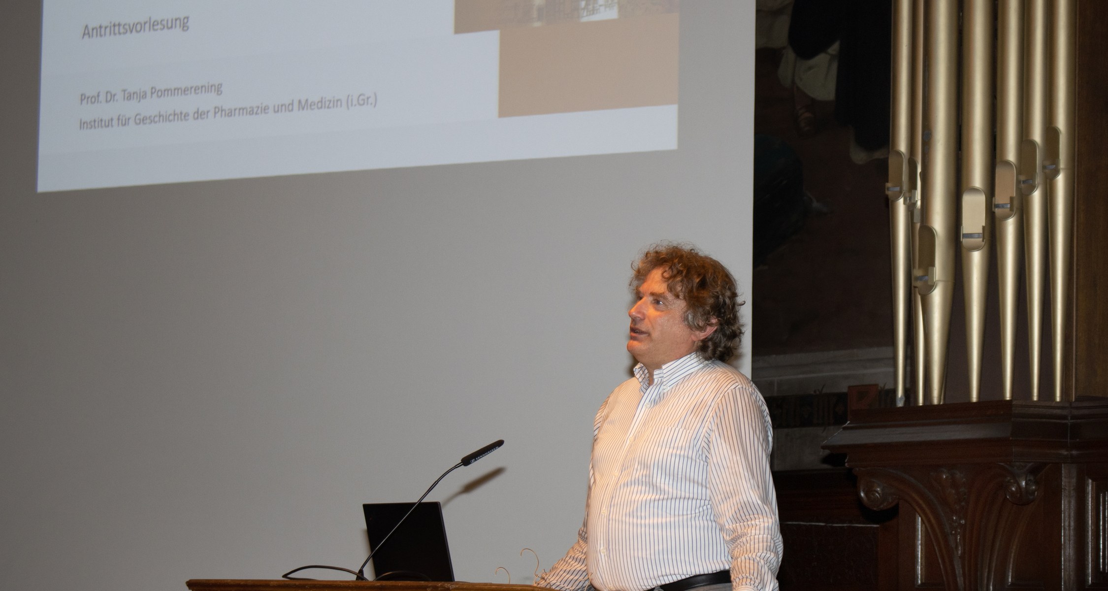 Coronabedingt leicht verspätet hielt Frau Prof. Dr. Tanja Pommerening am 30.6.2022 ihre Antrittsvorlesung. Erstmals seit zwei Jahren konnte damit wieder eine Veranstaltung in der historischen Alten Aula durchgeführt werden. Die Direktorin des Instituts für Geschichte der Pharmazie und Medizin (i. Gr.) ist seit Oktober 2020 in Marburg. In ihrem Vortrag „Pharmazie- und Medizingeschichte in Marburg – Wege, Perspektiven, Horizonte“ erinnerte die neu berufene Professorin an die historische Entwicklung der Disziplinen Medizin- und Pharmaziegeschichte. In der Medizin existiert eine akademische Vertretung der Fachgeschichte schon seit Anfang des 20. Jahrhunderts, entsprechende Lehrstühle gibt es seit den frühen 1960er-Jahren an fast jeder medizinischen Fakultät. In der Pharmazie gelang es in dem 1950er-Jahren an den Universitäten Braunschweig und Marburg, Professuren einzurichten, allerdings blieben dies die einzigen ihrer Art. In Marburg entstand unter der Ägide von Rudolf Schmitz das bis heute einzige Hochschulinstitut im deutschsprachigen Raum. Pommerening, Apothekerin, Historikerin und Ägyptologin, verwies auf die idealen Bedingungen für ihre Forschungen am Standort Marburg, die sie interdisziplinär, international, methodenaffin und anwendungsorientiert gestaltet. Als Kooperationspartner bieten sich einerseits die zahlreichen in Marburg vertretenen Geisteswissenschaften an, andererseits sind gemeinsame Projekte mit naturwissenschaftlichen Disziplinen geplant. So kann die analytische Chemie helfen, die Zusammensetzung historischer Materialien aufzuklären, die für Balsamierungsrituale und Mumifizierung verwendet wurden. Der internationale Ansatz spiegelt sich in einem unter Beteiligung der Pharmaziegeschichte startenden Masterstudiengang „Digitization and Preservation of Epigraphic Heritage“. Hier kooperiert die Universität Marburg mit der Ayn Shams Universität in Kairo. Herausforderungen und Chancen bietet die Verantwortung für eine bedeutende anatomische Sammlung und die Drogensammlung des Botanikprofessors Albert Wigand (1821-1886), die dem Institut übertragen wurde. Die Position an der Schnittstelle von Pharmazie und Medizin ermöglicht es, gemeinsame Lehrveranstaltungen für Studierende beider Fächer anzubieten, etwa zu Terminologie und Rezeptsprache oder als Wahlpflichtpraktikum. Die Neujustierung des Institutes zeigt sich auch in der Personalausstattung, demnächst wird eine zweite Professur für Geschichte der Medizin und Pharmazie besetzt werden.
