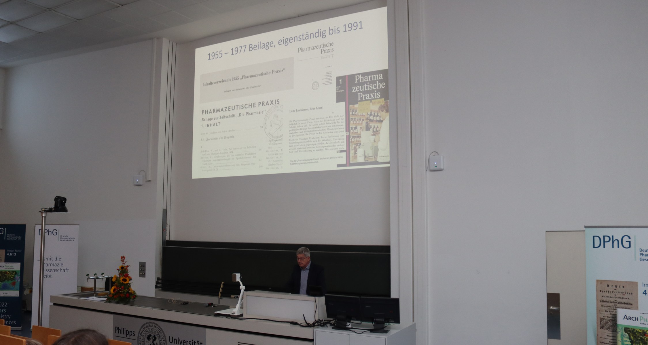 Das Vorsymposium der Fachgruppe der Geschichte der Pharmazie widmete sich in diesem Jahr dem Thema „Die Pharmazeutische Gesellschaft und ihre Zeitschriften“ anlässlich der Gründung der Zeitschrift „Archiv der Pharmazie“ vor 200 Jahren. Auch das zweite Organ der DPhG „Pharmakon“ feiert in 2022 ein Jubiläum mit 50 Jahren ihres Bestehens. Zahlreiche Vorträge zur Entwicklung der Zeitschriften und wissenschaftliche Aspekte, aber auch viele launige Anekdoten und Erinnerungen hatten die Vortragenden mitgebracht.