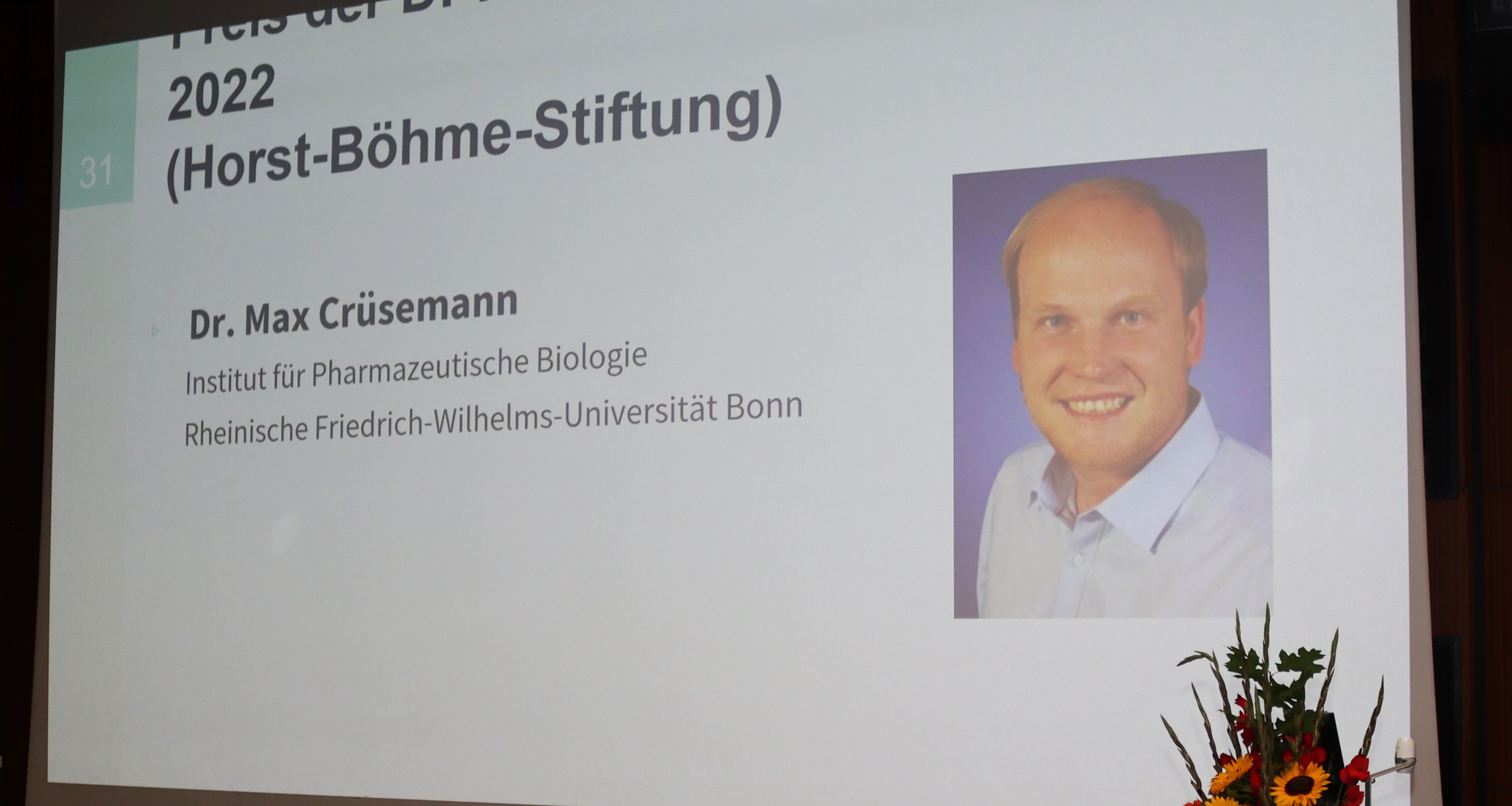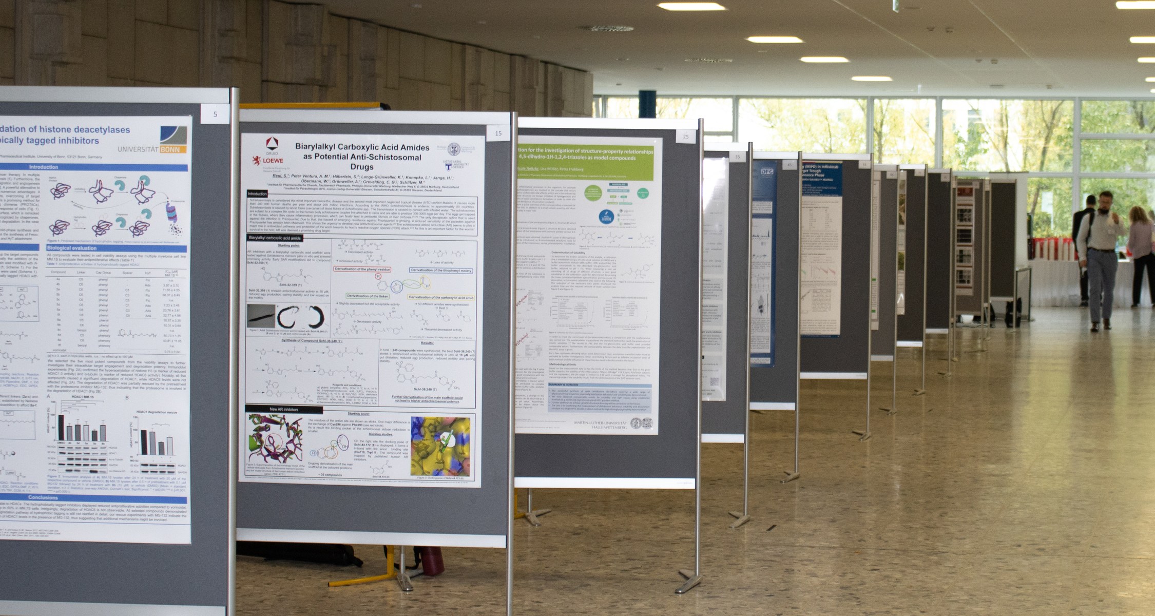 Die Posterpreise der Lesmüller-Stiftung wurden in diesem Jahr an Eilika Zorn (Universität Hamburg), Christoph Wilhelmy (Universität Mainz), David Skrabak (Universität Tübingen), Lara Louisa Stock (Universität Halle) und Marleen Meyer (Universität Greifswald) verliehen. Zusätzlich konnten in diesem Jahr noch drei Posterpreise des Verlags Wiley aus Anlass des 200. Geburtstages des Archives der Pharmazie vergeben werden. Preisträger sind Lara Toy (Friedrich-Alexander-Universität Erlangen-Nürnberg), Daniel Stopper (Universität Bonn) und Marc Wolter (Universität Tübingen).