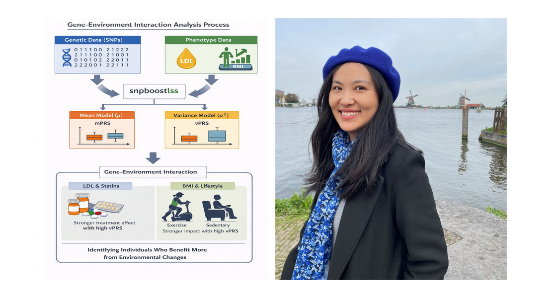 Polygenic risk scores (PRS) combine information across many genetic variants to estimate a person’s predisposition to a trait. While most PRS focus on modeling the mean of a trait, patterns of variability can also be informative because they may indicate that genetic effects differ across environments. We propose a new algorithm that efficiently builds PRS for both the mean and the variance of a trait simultaneously. Investigating low-density lipoprotein (LDL) and body mass index (BMI) in UK Biobank, we found that the variance PRS (vPRS) showed strong interactions with environmental exposures such as statin use, physical activity and sedentary behavior. Individuals with higher LDL vPRS showed larger LDL reductions associated with statin use, while individuals with higher BMI vPRS showed stronger associations with physical activity and sedentary behavior, highlighting a novel application of PRS in gene-environment interactions with potential implications for personalized interventions. Details of the paper can be found here.