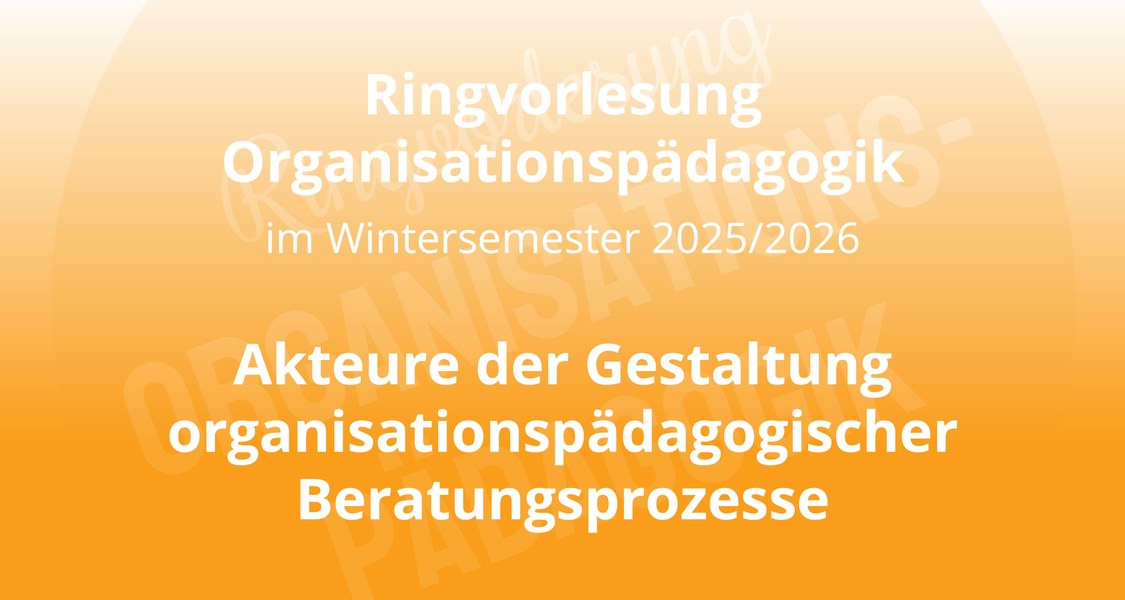 Im Wintersemester 2025/2026 befasst sich die Ringvorlesung Organisationspädagogik thematisch mit „Akteure[n] der Gestaltung organisationspädagogischer Beratungsprozesse“.