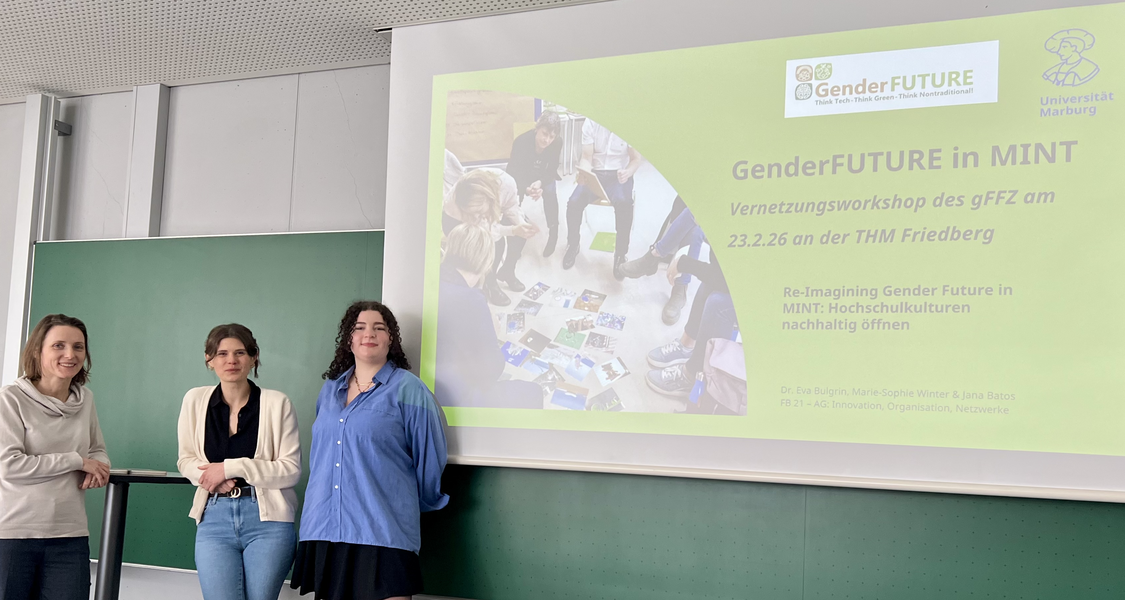 Trotz erfolgreicher Laufzeitverlängerung bis zum 31. August 2026 geht es nun mit großen Schritten auf das Projektende zu. In den Bereichen Nachhaltigkeit, Gleichstellung und MINT hat das Marburger Teilprojekt des Forschungsverbundes GenderFUTURE in Zusammenarbeit mit verschiedenen Netzwerken und Praxispartnern seine Forschungsergebnisse aus dem Leitfaden „Greening MINT - Nachhaltigkeit als Türöffner für Frauen*. MINT-Studiengänge geschlechtergerecht gestalten - Hochschulentwicklung partizipativ unterstützen“ (i.E.) vorgestellt. Diese Transferveranstaltungen konnten nicht nur unsere Teilnehmenden inspirieren, sondern auch dazu, wie eigene Unternehmen und Hochschulen GreenMINT, sog. Nachhaltige MINT-Studiengänge, als Türöffner nutzen können.