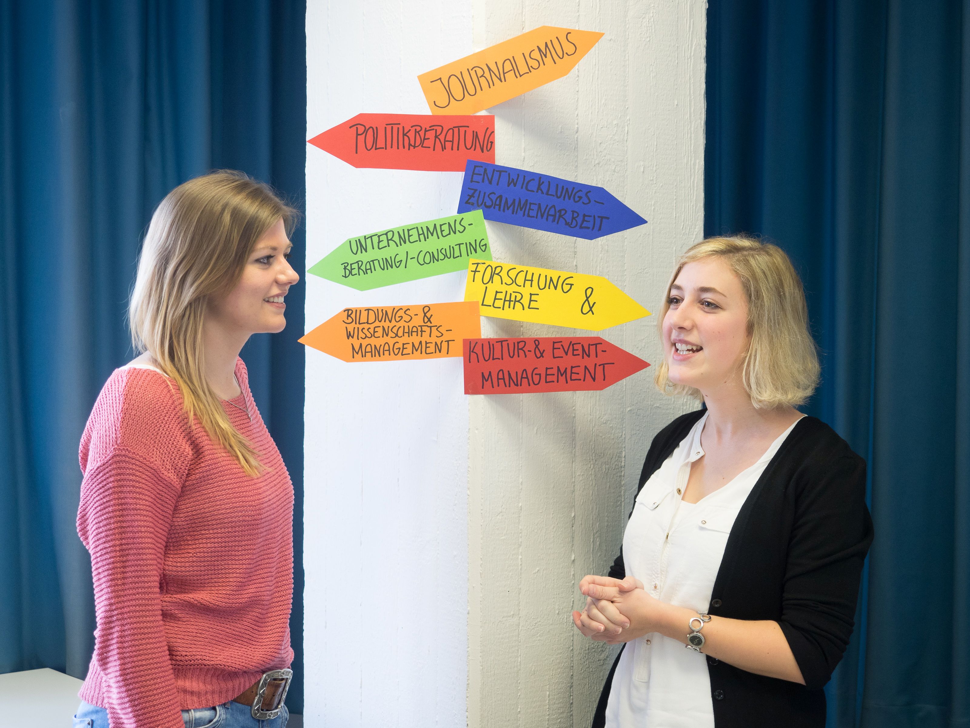 Ein fest gelegtes Berufsfeld gibt es nicht, Sie erfahren jedoch während Ihres gesamten Studiums und v.a. während des Praktikums eine intensive Betreuung, um Ihr Studium mit dem späteren Berufsfeld in Beziehung setzen, Perspektiven entwickeln und Kontakte knüpfen zu können.