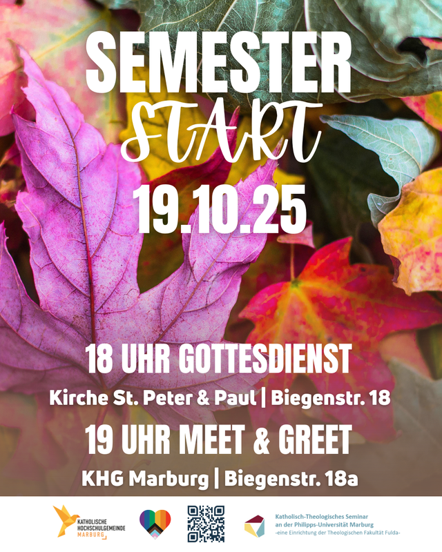 Semestereröffungsgottesdienst (gemeinsam mit der KHG) | 19.10.2025 18:00 Uhr |