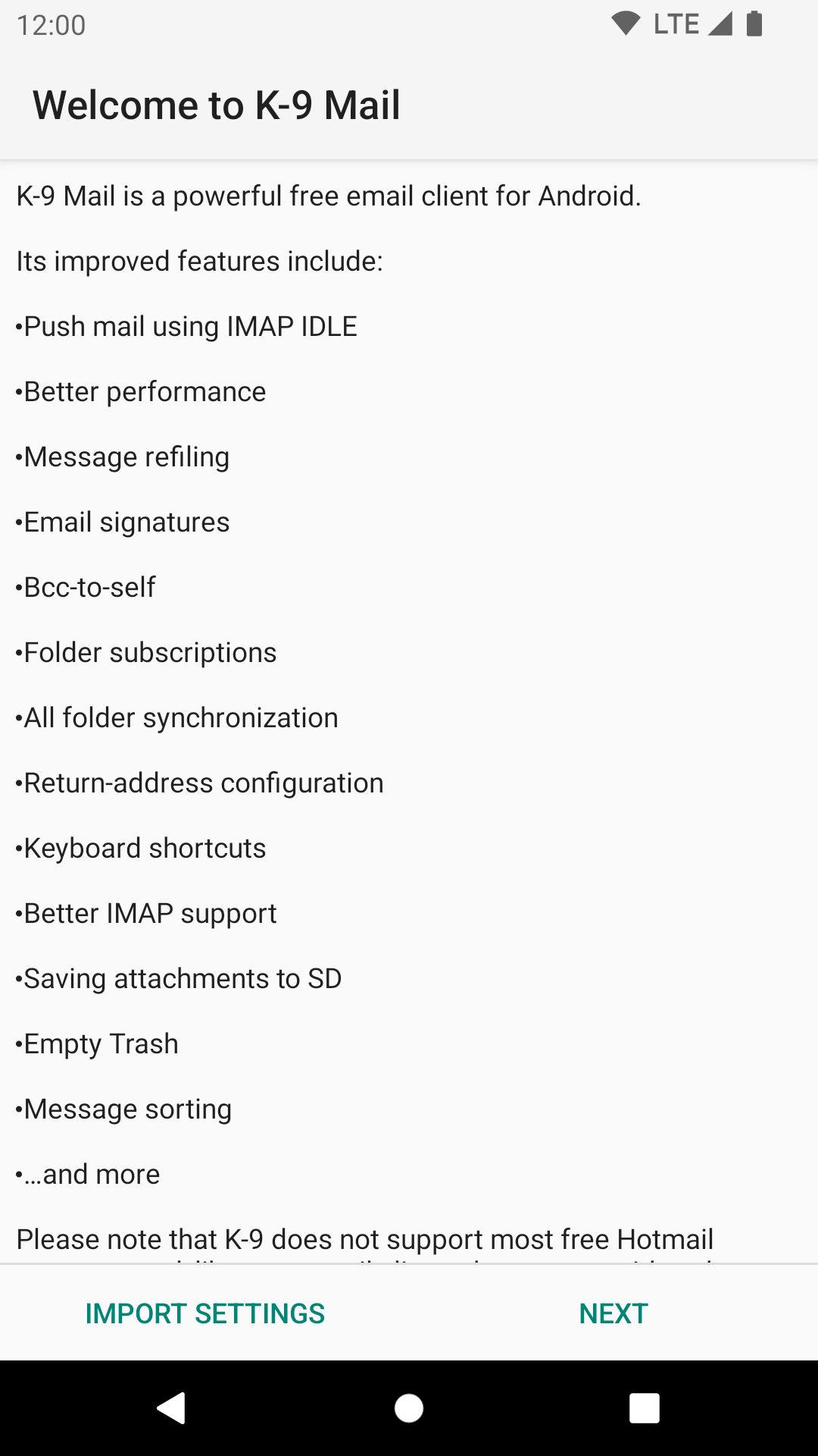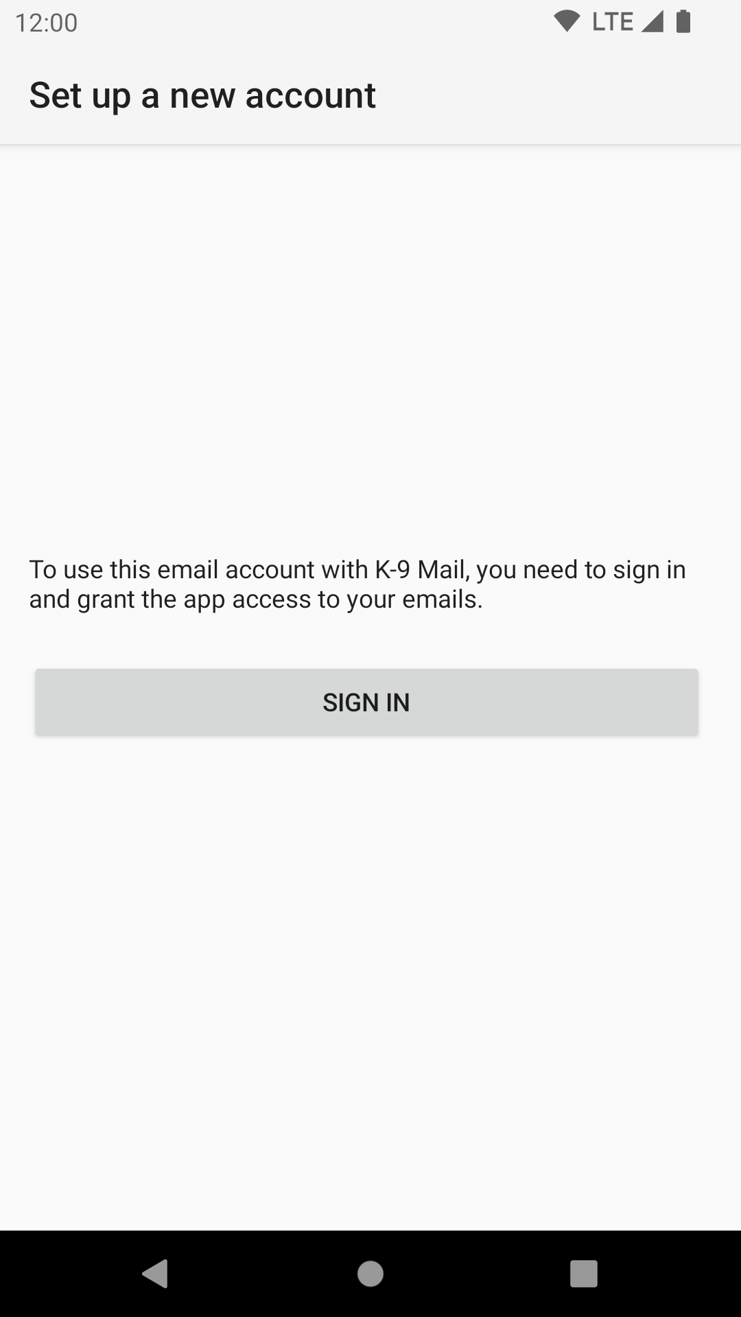 - Falls Sie noch kein Konto eingerichtet haben, erscheint der Begrüßungsbildschirm von K-9 Mail.