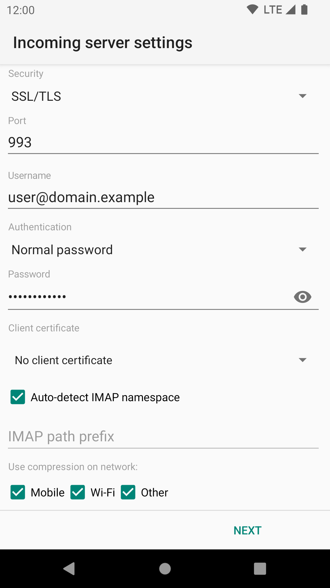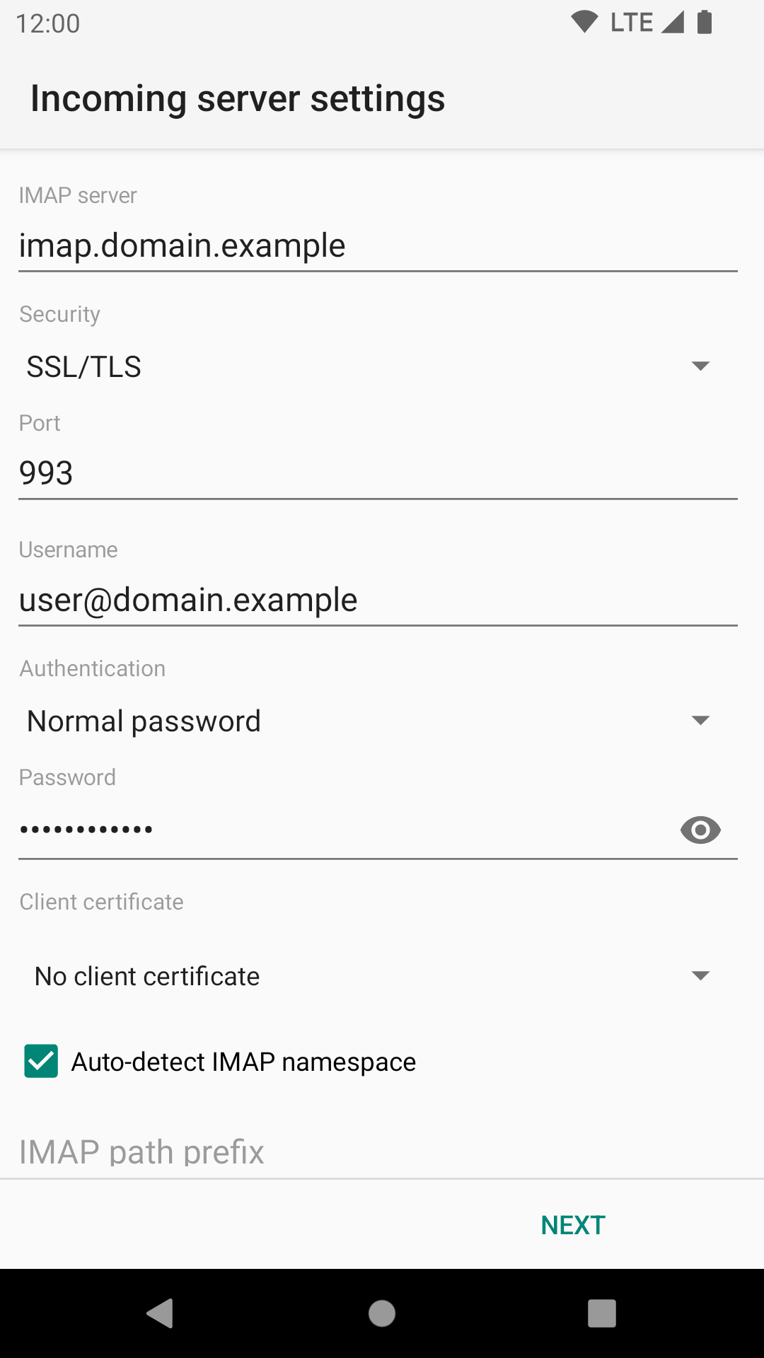 - Tippen Sie auf dem Bildschirm „Kontotyp“ auf „IMAP“.