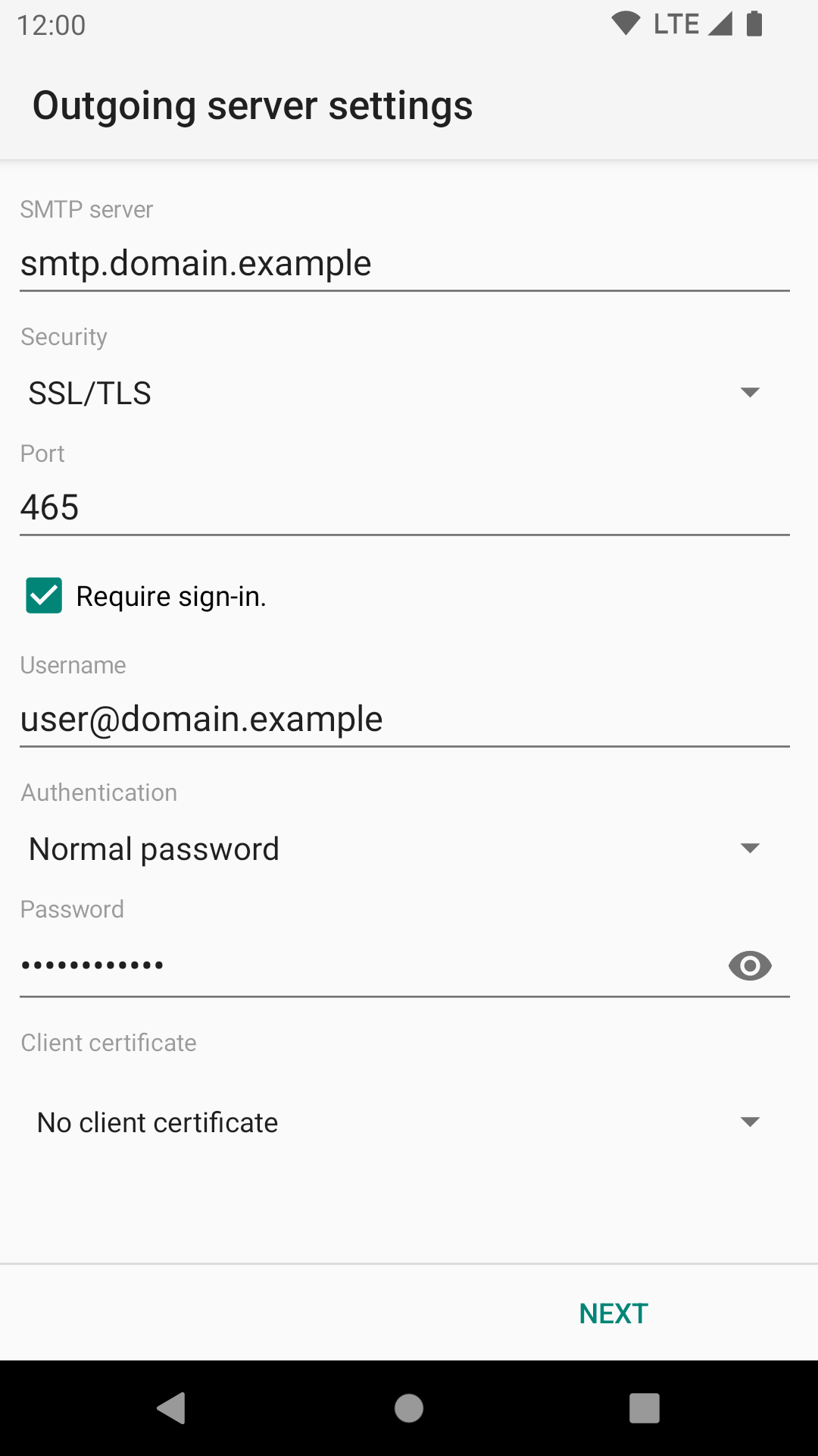 - Geben Sie die Servereinstellungen für ausgehende E-Mails ein. Tippen Sie dann auf „Weiter“.