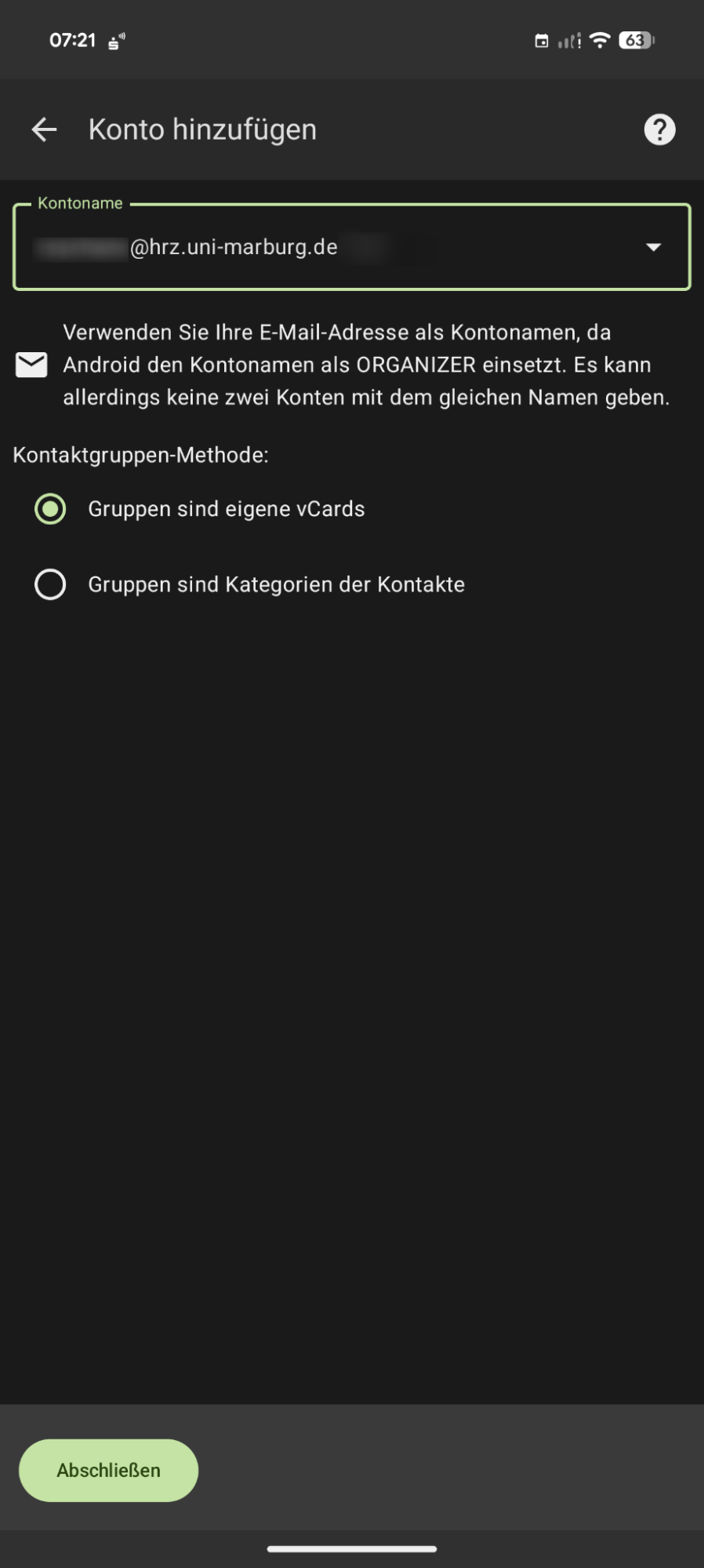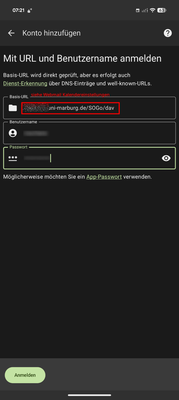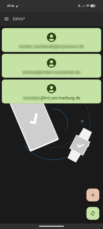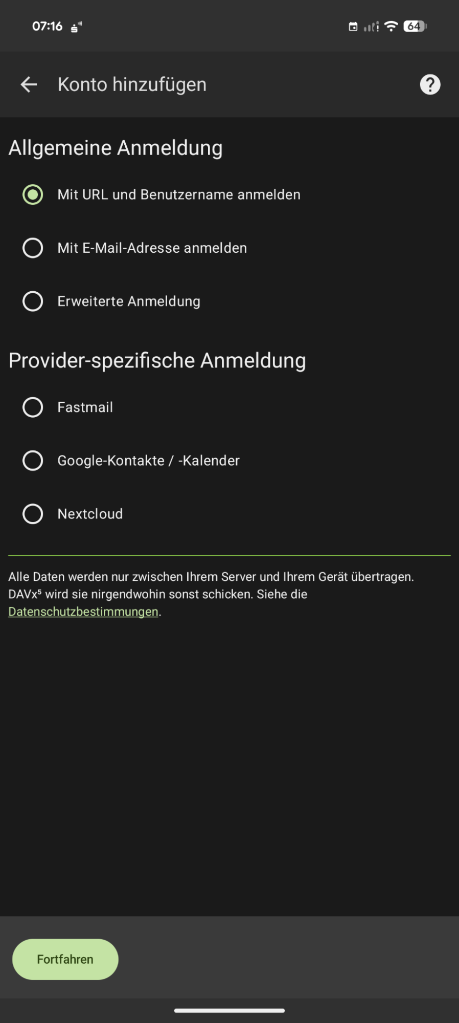 - Anmelden: DAVx⁵ verbindet sich nun mit dem Server.