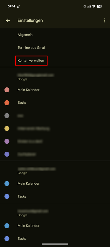 - Konten verwalten: Tippe in den Einstellungen auf "Konten verwalten"