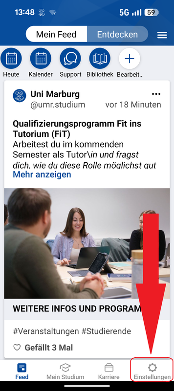 Bitte befolge die nächsten 6 Schritte, um das 2FA-Modul in der Uni Marburg-App erfolgreich einzurichten.